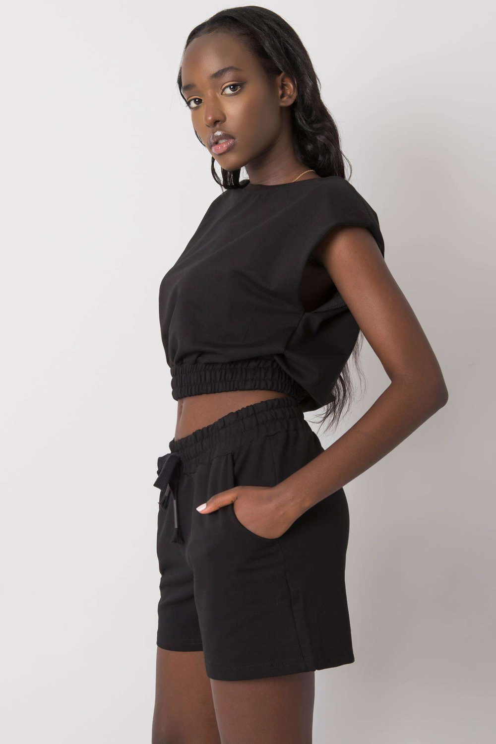 Komplekta izmēri S izmērā, mērot plakanu: platums zem padusēm - 48 cm, sporta krekla garums - 43 cm, platums jostasvietā - 35 cm, šortu garums - 34 cm