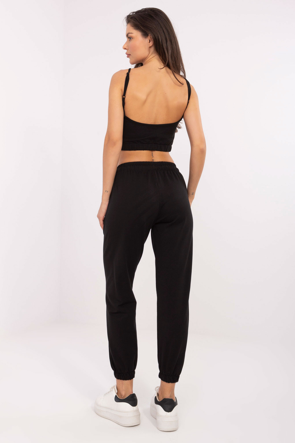 Komplekta izmēri S izmērā, mērot plakanu: platums zem padusēm - 38 cm, augšdaļas garums - 33 cm, platums jostasvietā - 33 cm, bikšu garums - 89 cm