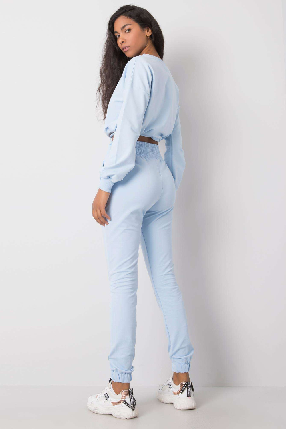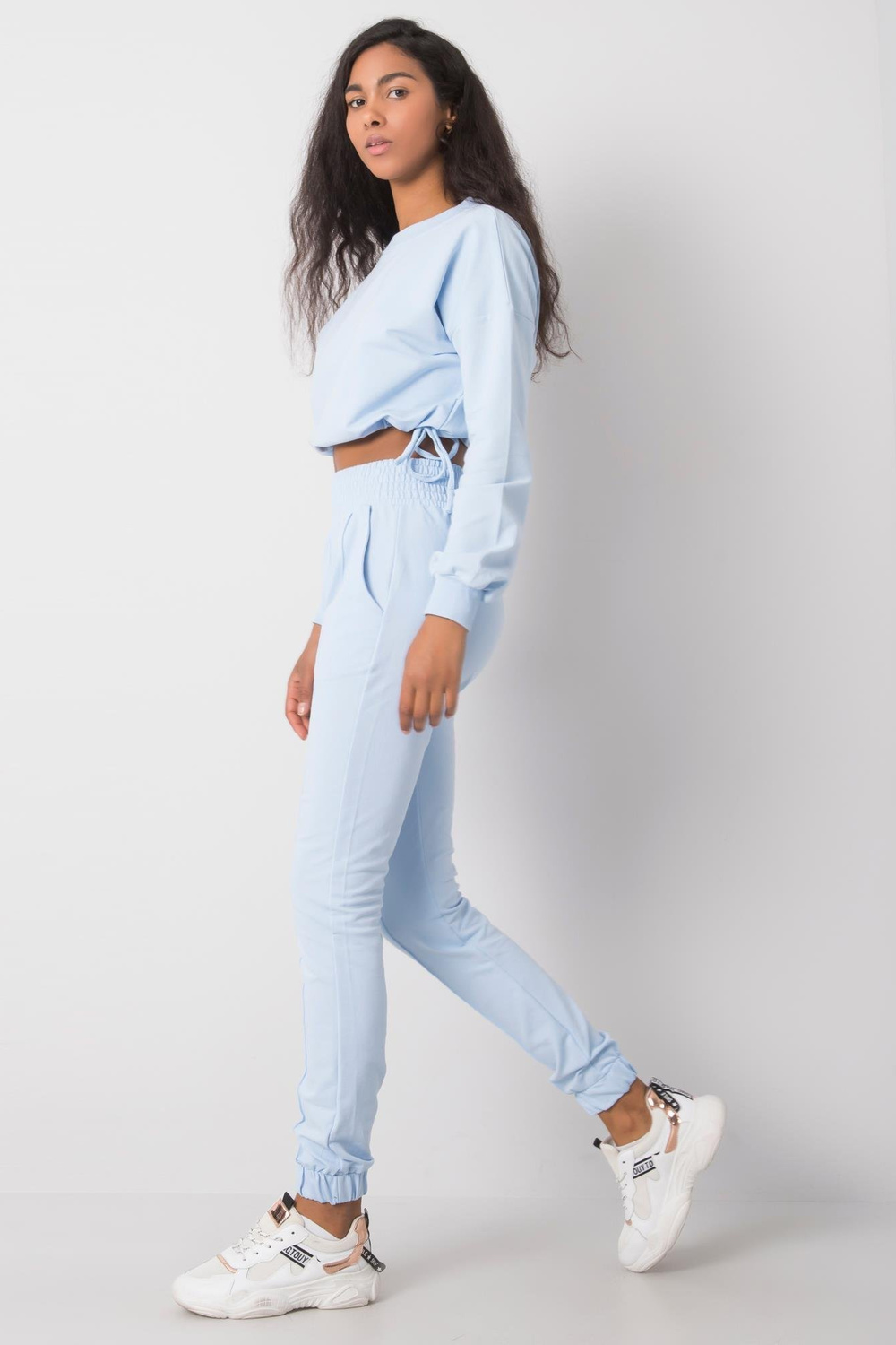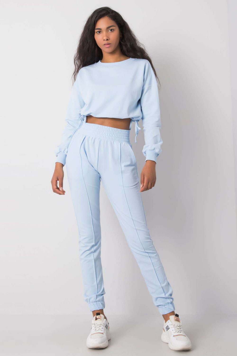 Gaiši zils ikdienas komplekts Laila RUE PARIS. Komplektā ietilpst: sporta krekls, bikšu materiālssastāvs: 90% kokvilna, 10% elastāns mazgāšanas metode: veļas mašīna 30°C Modelis valkā S izmēru. Modeļa izmēri: augums 174 cm, krūtis 84 cm, viduklis 60 cm, gurni
