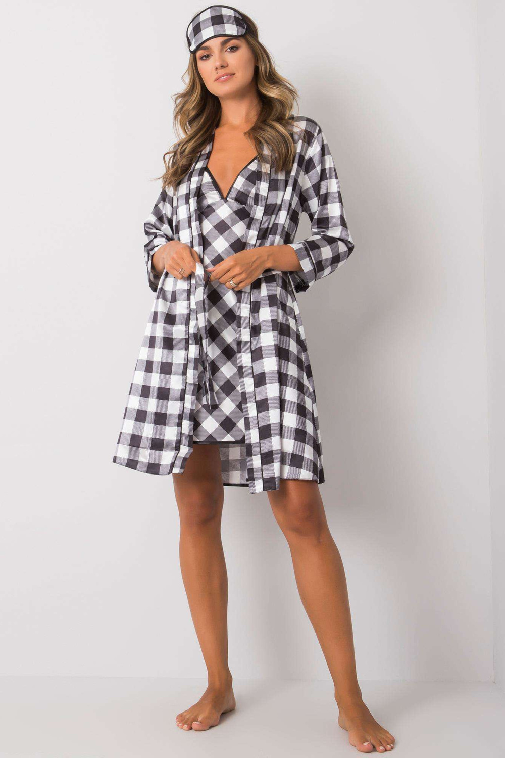 Balts un melns trīsdaļīgs rūtains nakts komplekts