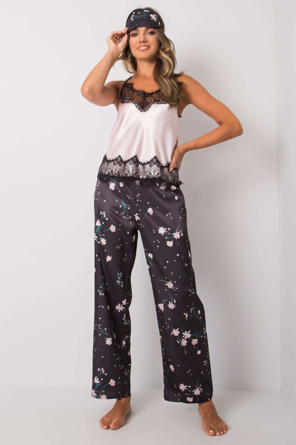 Melns un rozā trīsdaļīgs guļamkomplekts