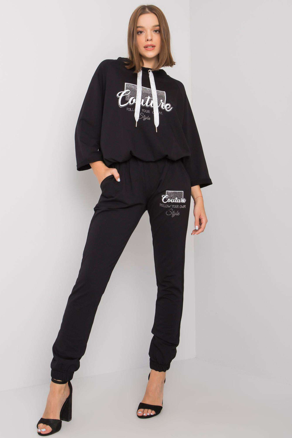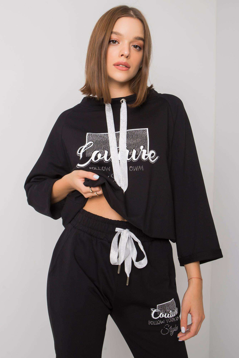 Komplekta izmēri S/M izmērā, mērot plakani: platums zem padusēm - 62 cm, sporta krekla garums - 55 cm, piedurknes garums - 44 cm, vidukļa platums - 39 cm, bikšu garums - 98 cm