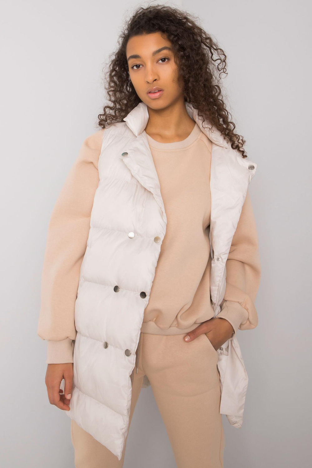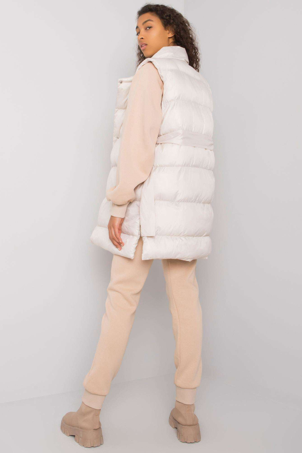 Bēšs trīsdaļīgs komplekts ar Minneola vesti.