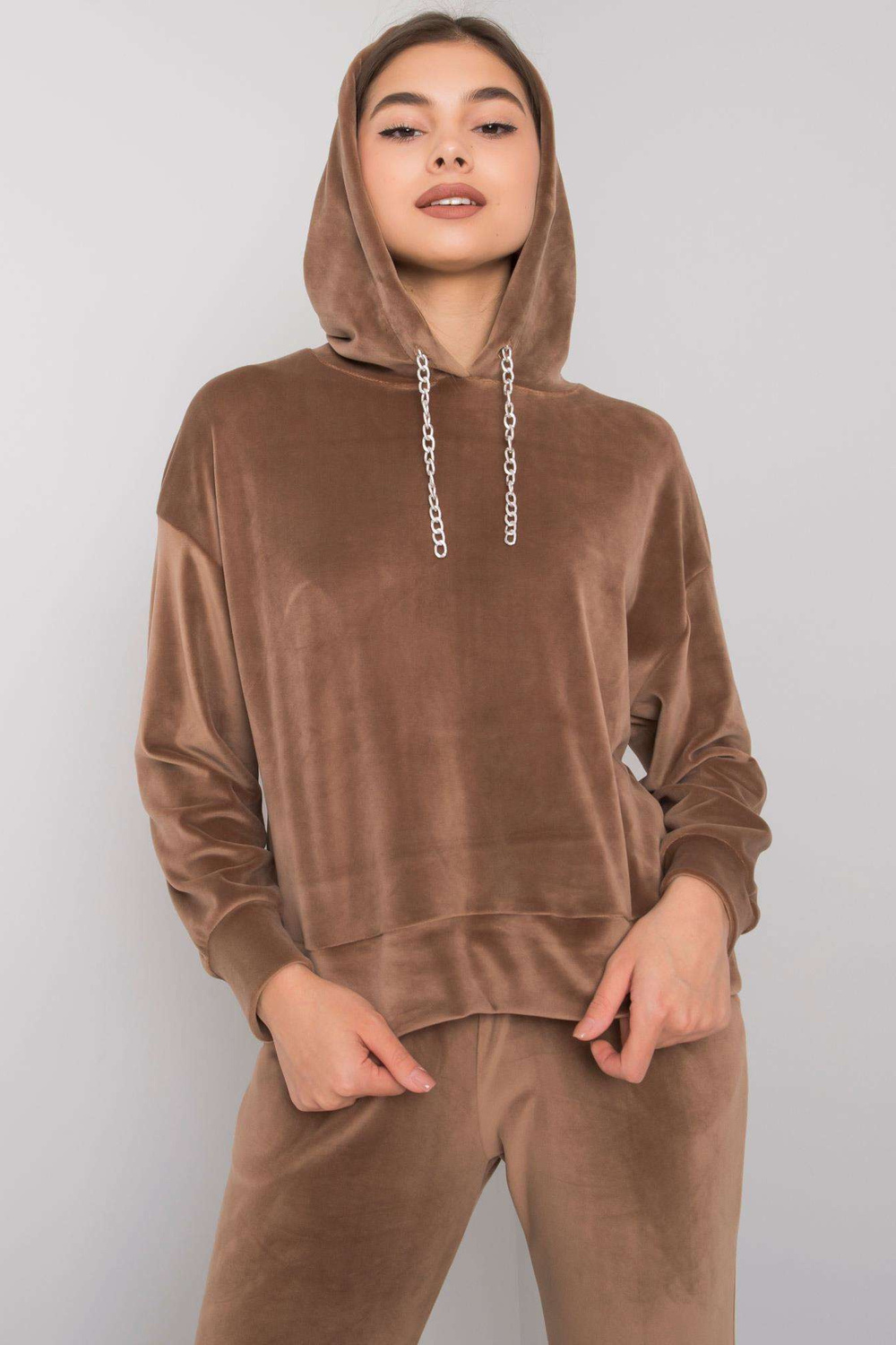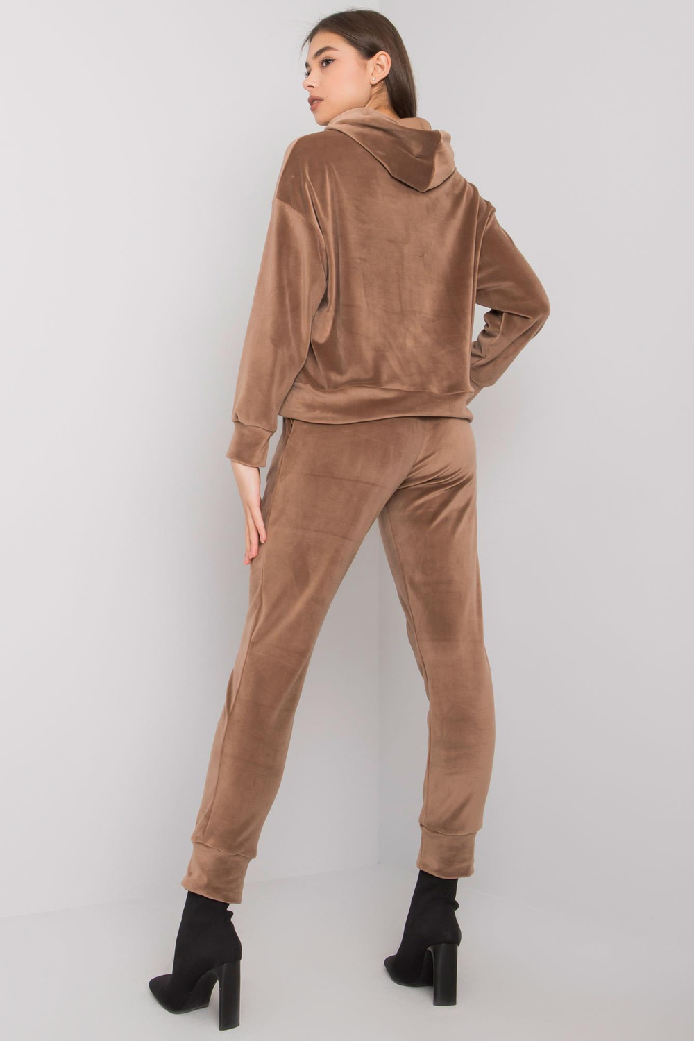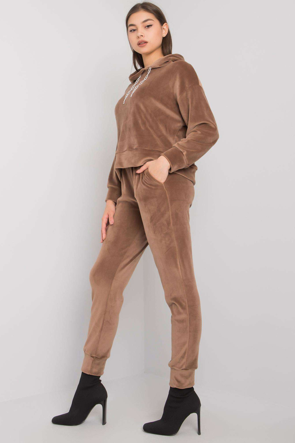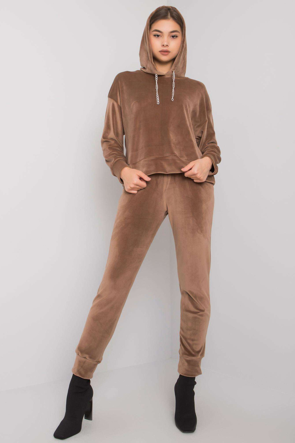 Tumši bēšs velūra komplekts ar Chanya biksēm.