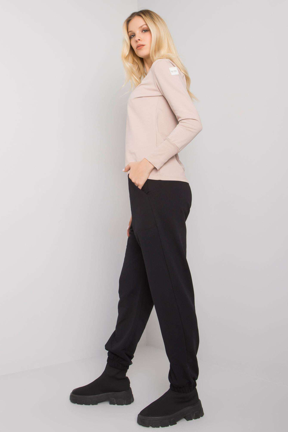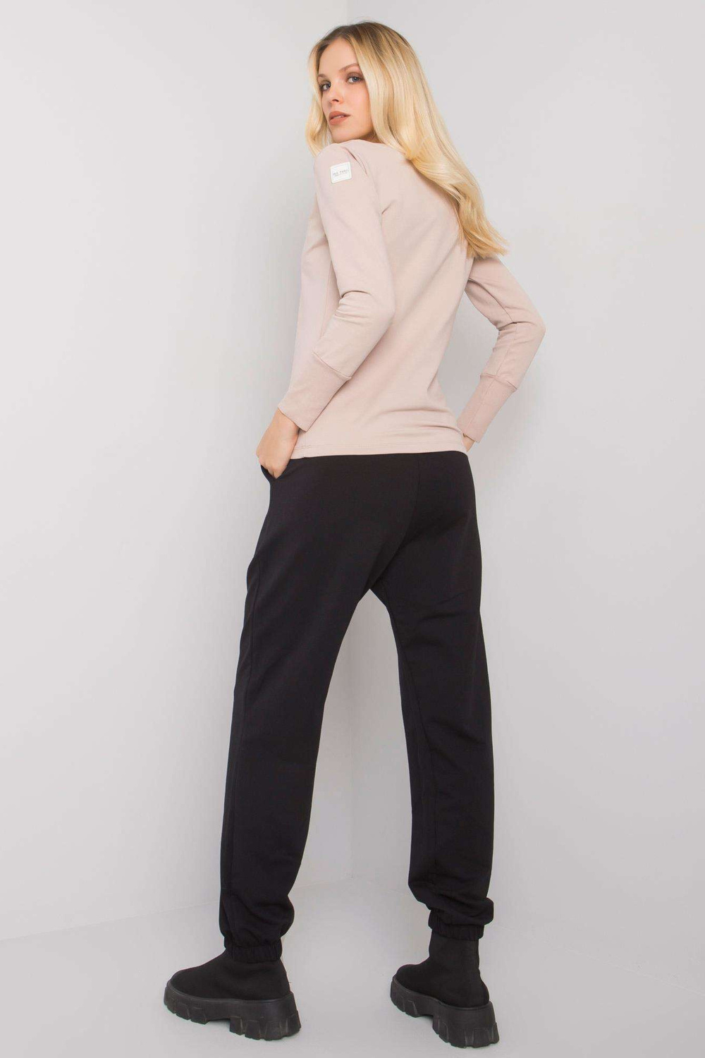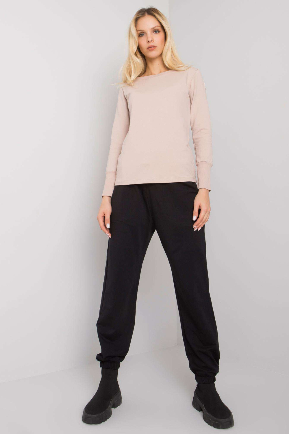 Melnbēšs sieviešu ikdienas komplekts Atalaya RUE PARIS. Komplektā ietilpst: sporta krekls, bikšu materiālssastāvs: 90% kokvilna, 10% elastāns mazgāšanas metode: veļas mašīna 30°C Produkta kods: RV-KMPL-7338.07X dominējošais raksts: bez raksta Stils: ikdienišķs, sportisks o