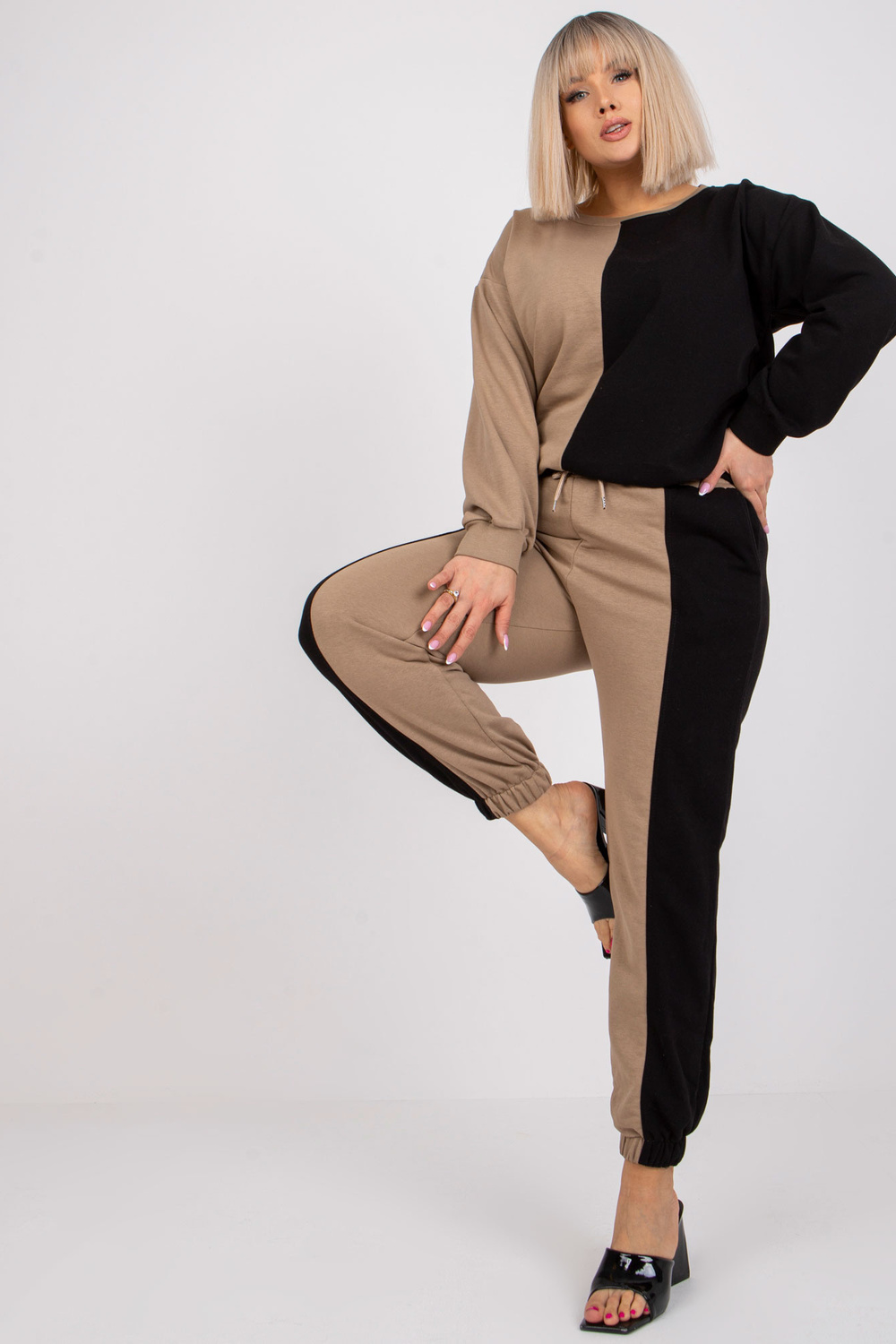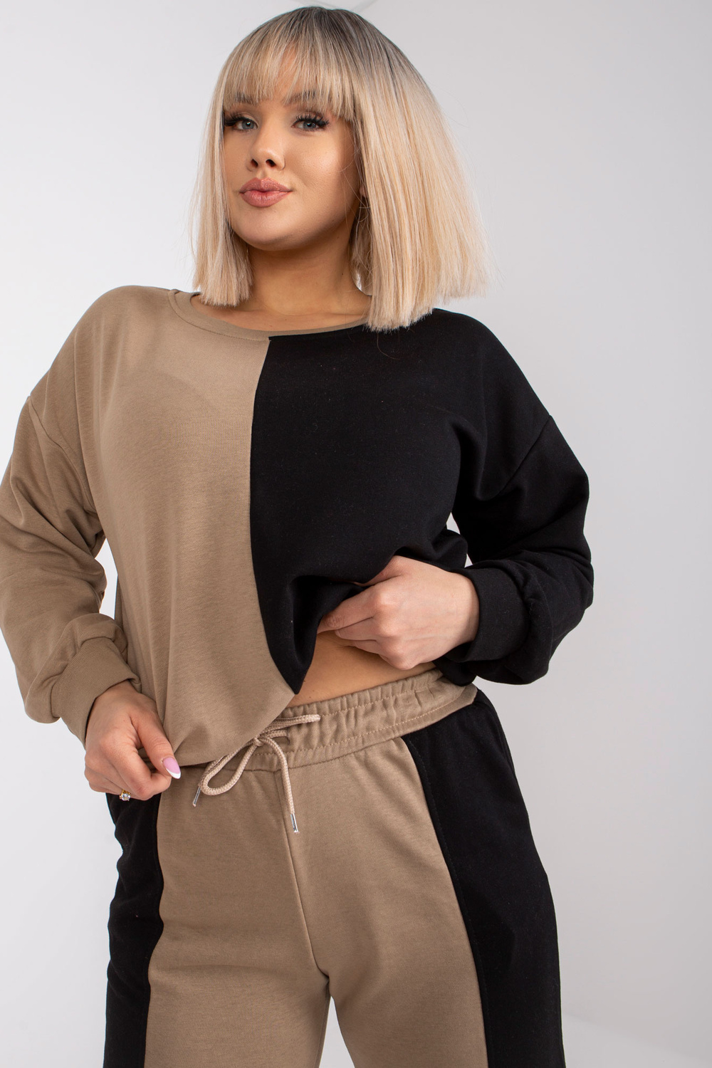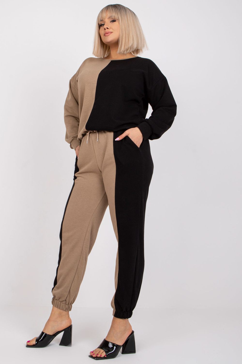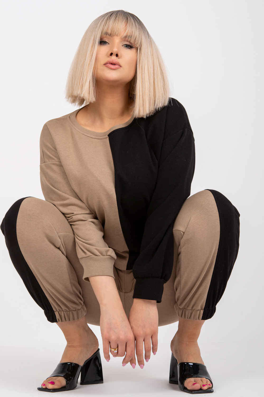 Tumši bēšs un melns sporta tērps Amishi liela izmēra .
