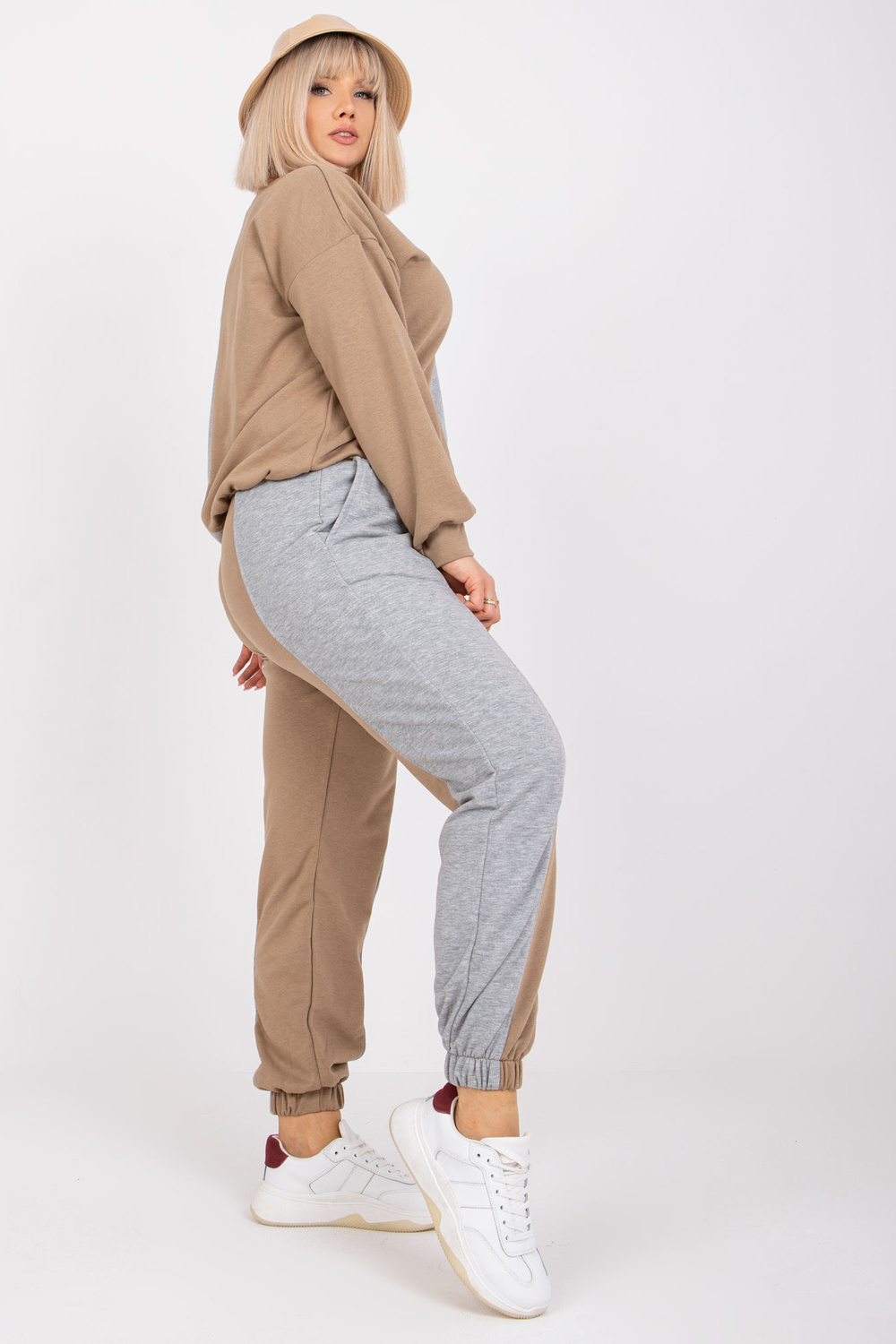 Tumši bēšs pelēks kokvilnas sporta tērps Amishi liela izmēra .