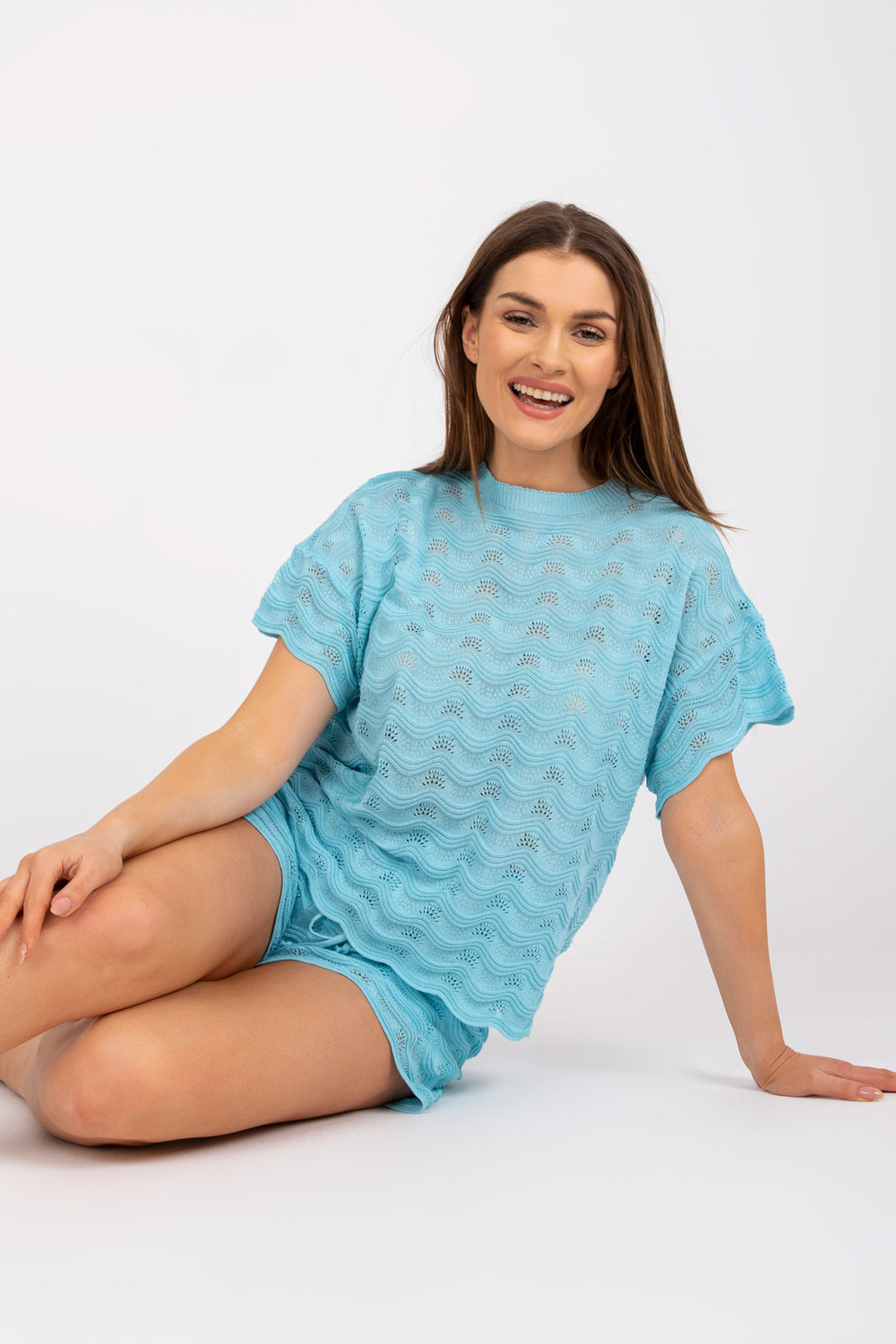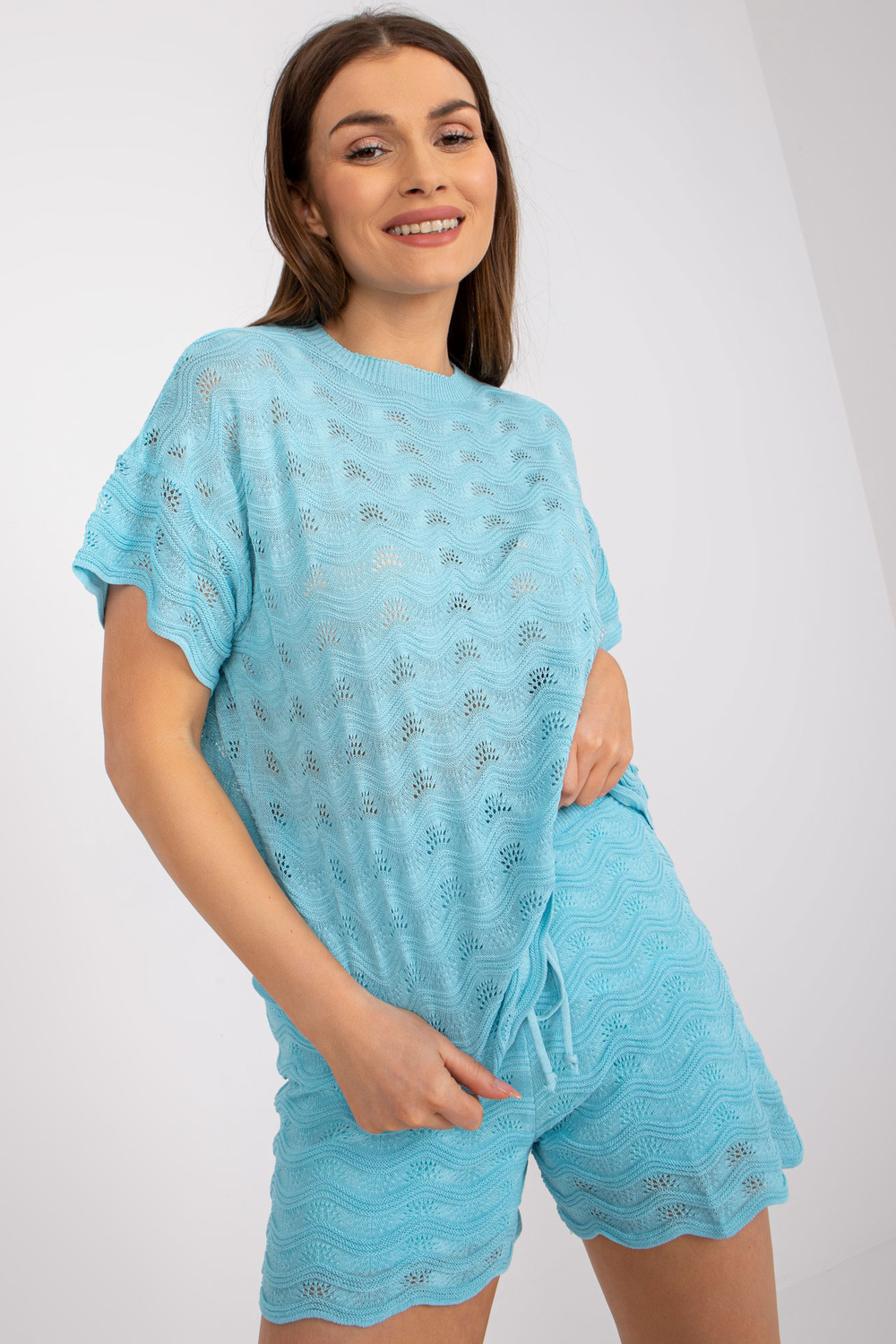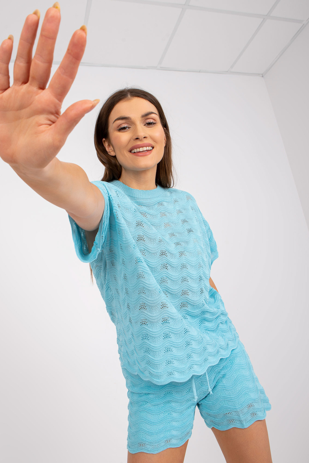 Blūze vasarai ar īsām piedurknēm. komplektā ietilpst: blūze, šorti materiālssastāvs: 89% viskoze, 11% poliamīds mazgāšanas metode: veļas mašīna 30°C Produkta kods: EM-KMPL-3879.73P dominējošais raksts: bez raksta Stils: ikdienišķs, boho gadījums: ikdienišķs, t