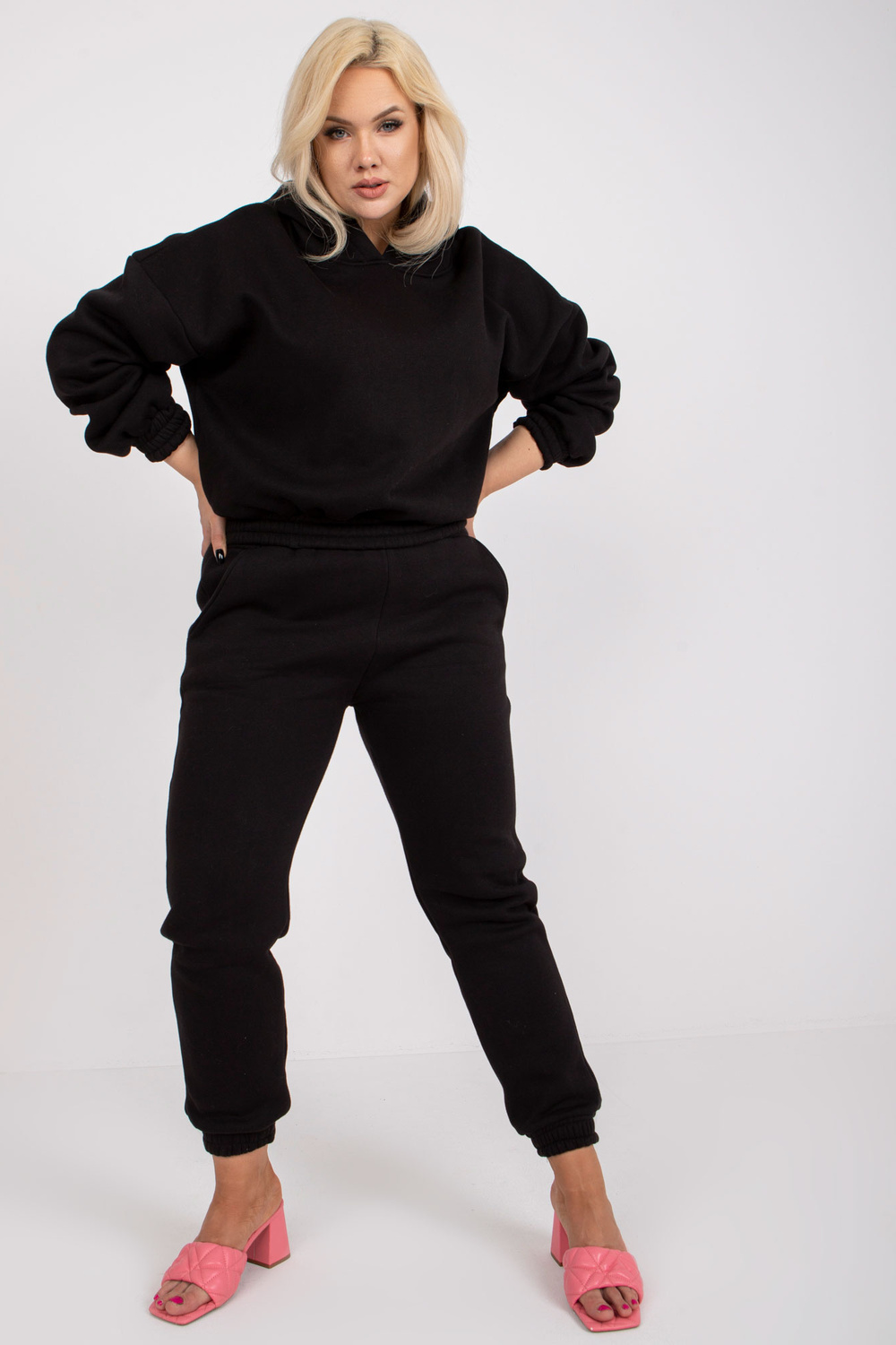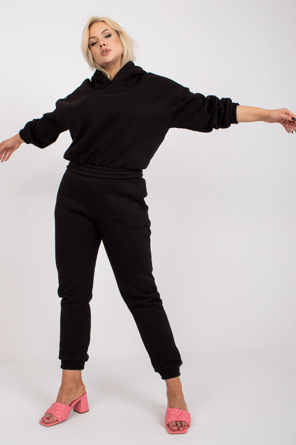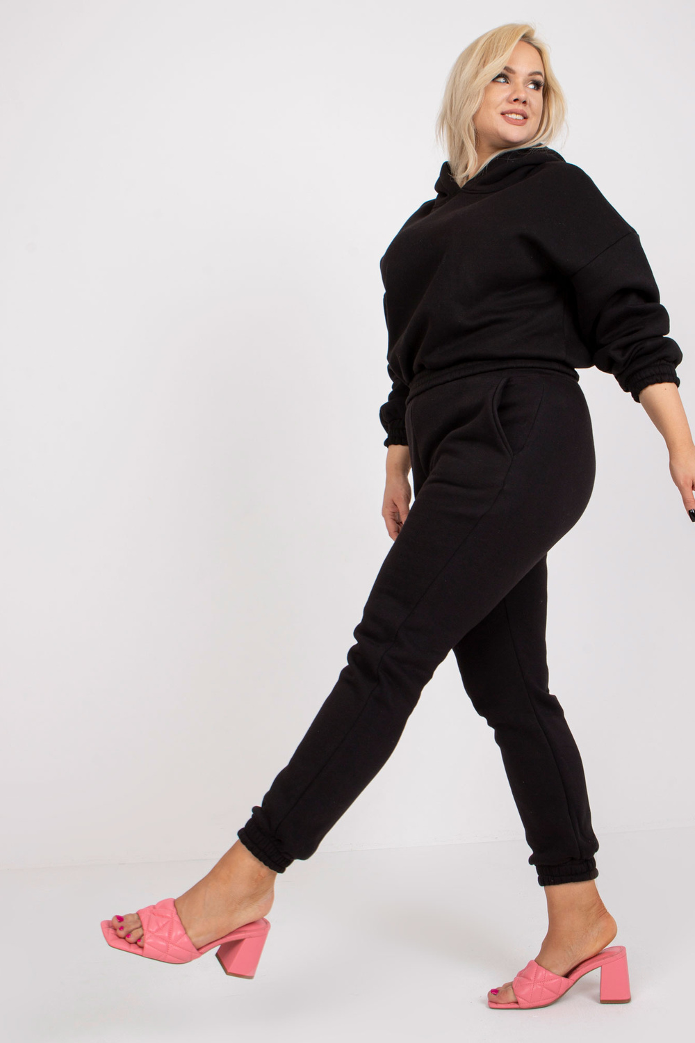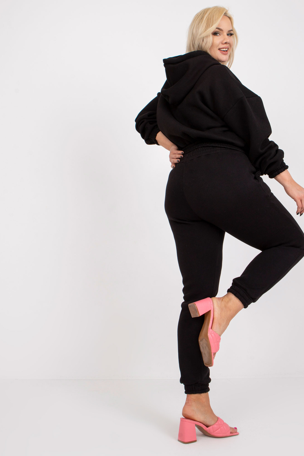 Liela izmēra melnā džempera komplekts ar kapuci .