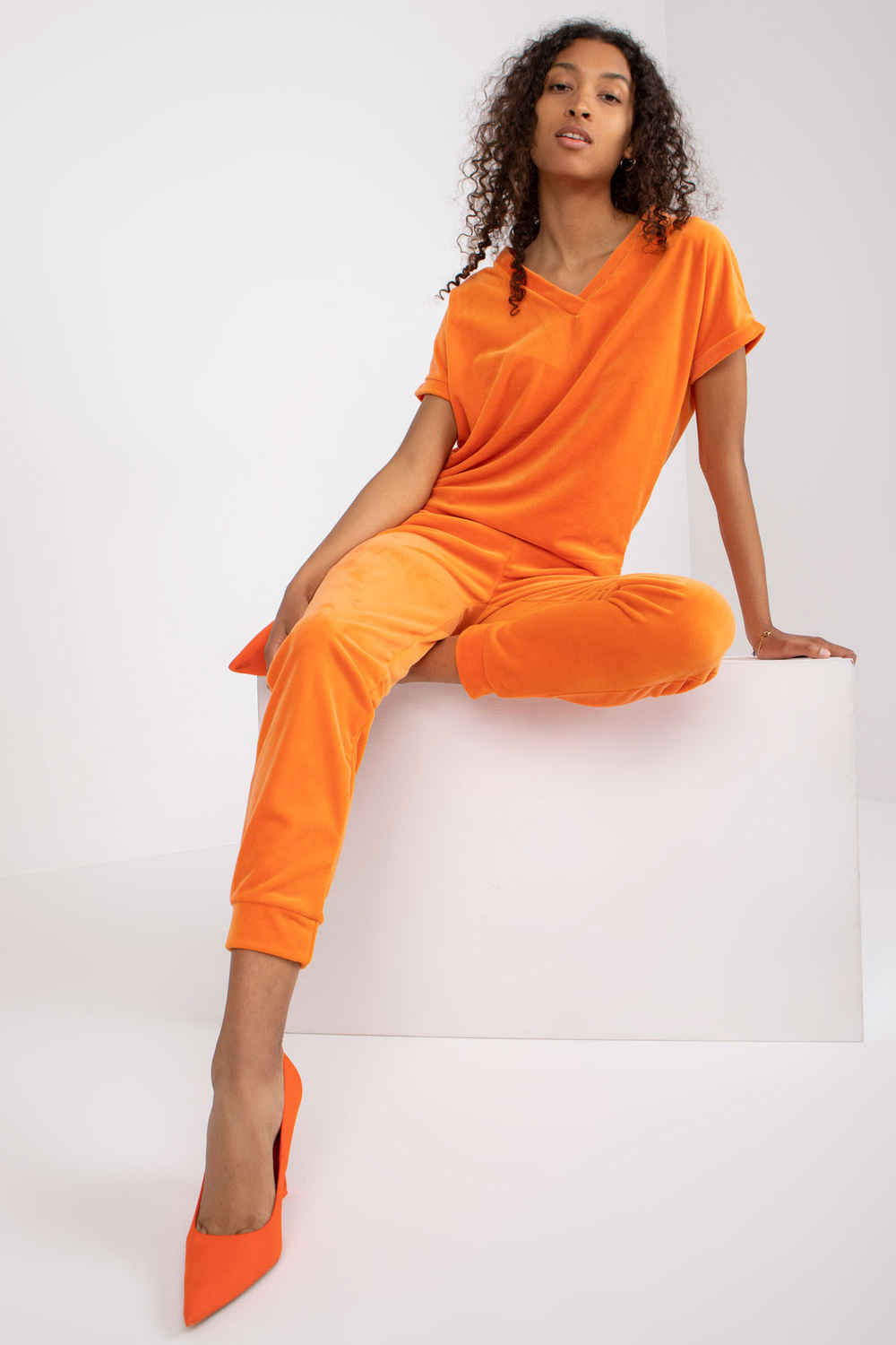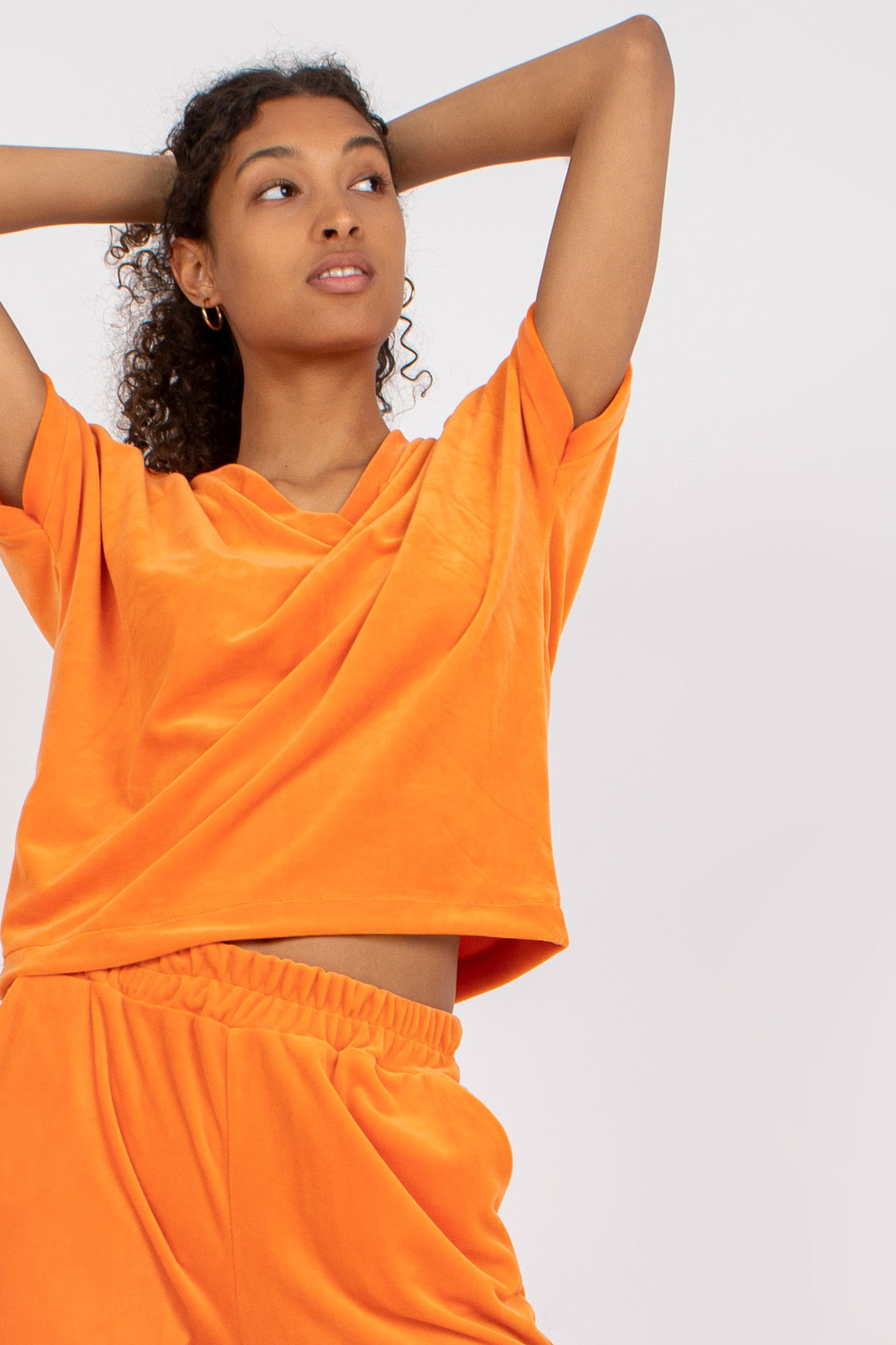 Oranžs velūra komplekts ar V veida kakla izgriezumu RUE PARIS .