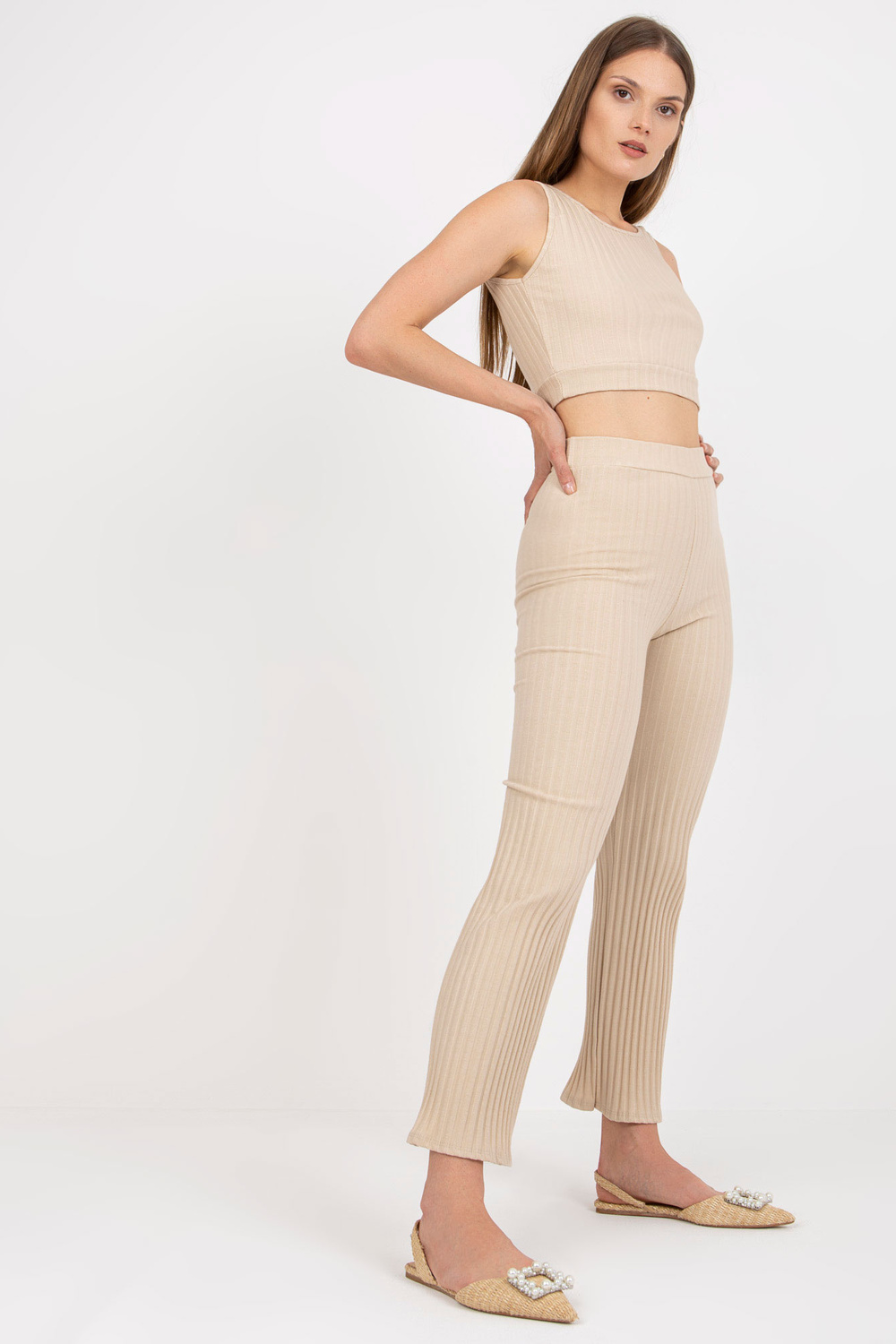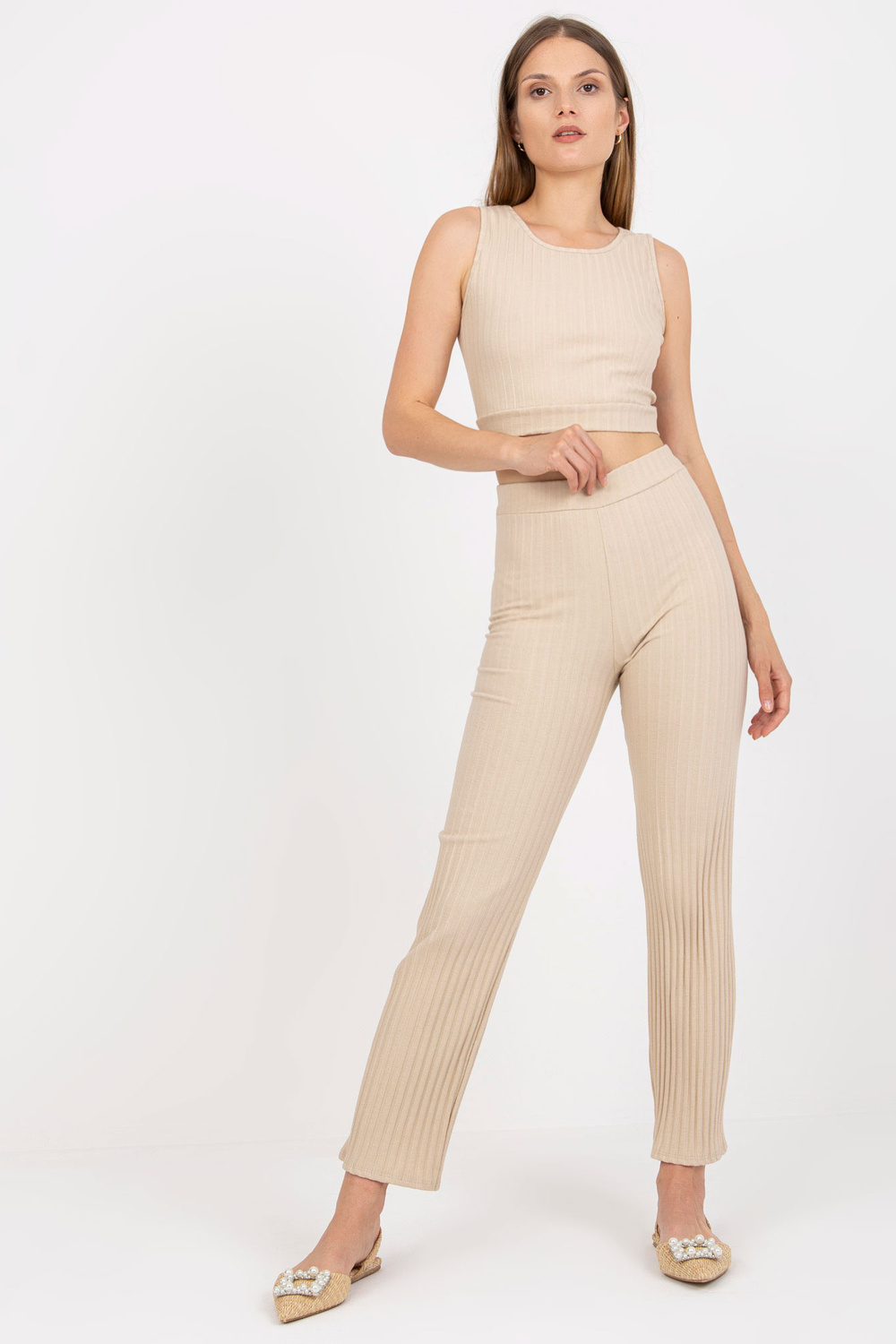 Bezs divdaļīgs ikdienas komplekts ar svītrām.