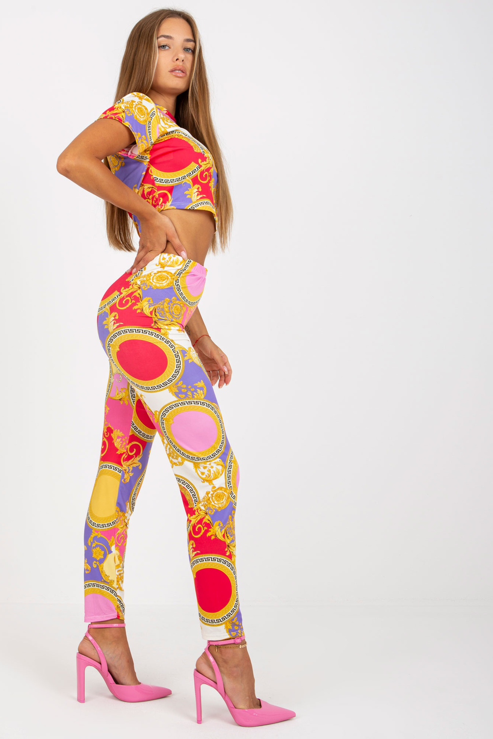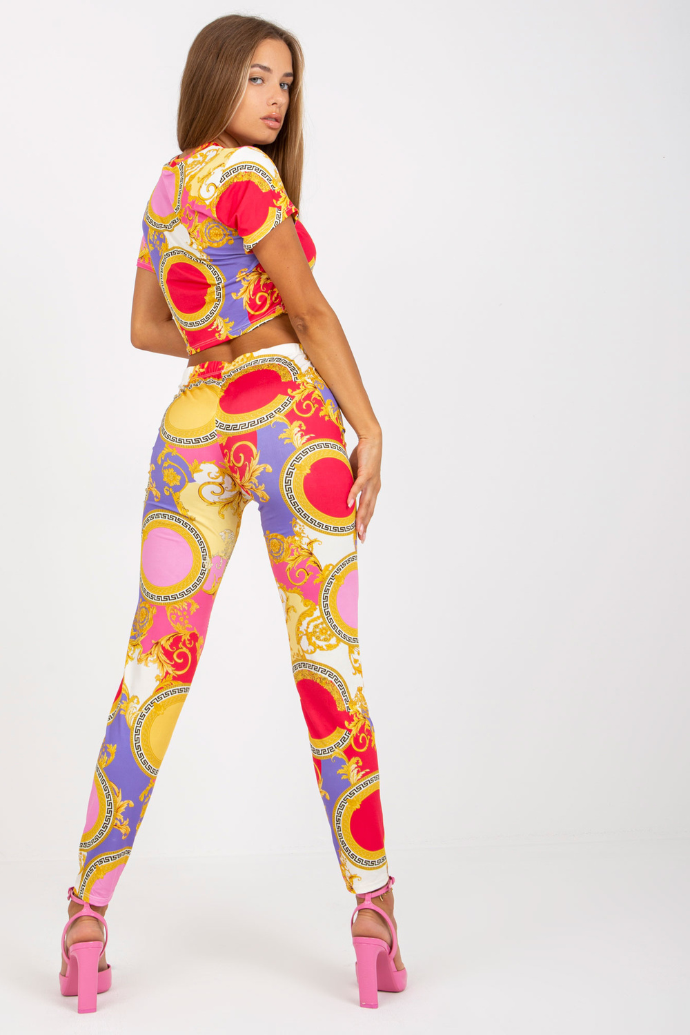 Ikdienas divdaļīgs komplekts ar rozā rakstiem ar legingiem.