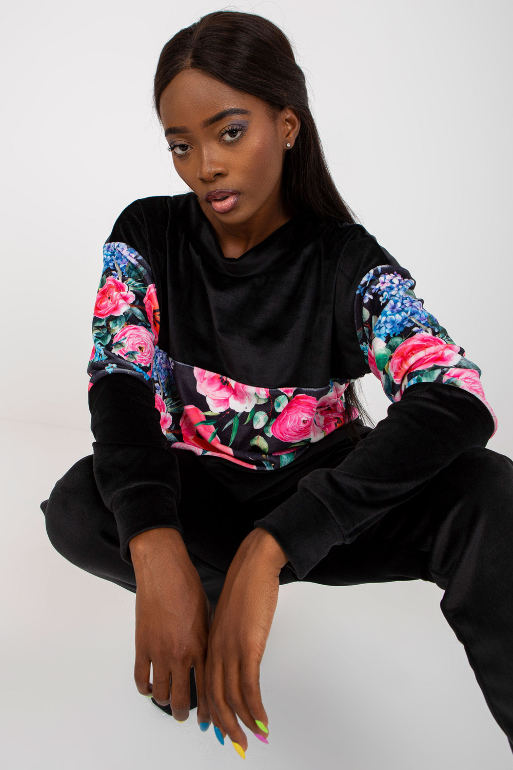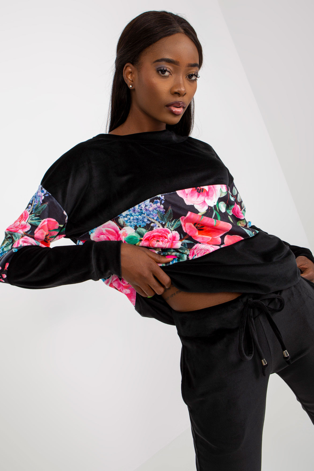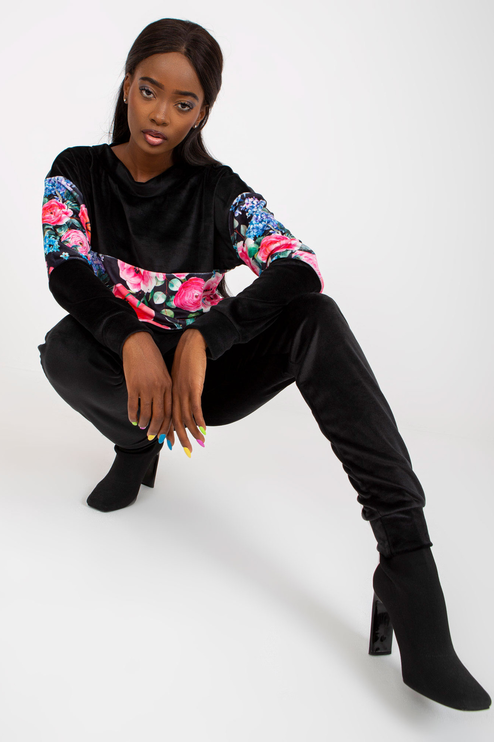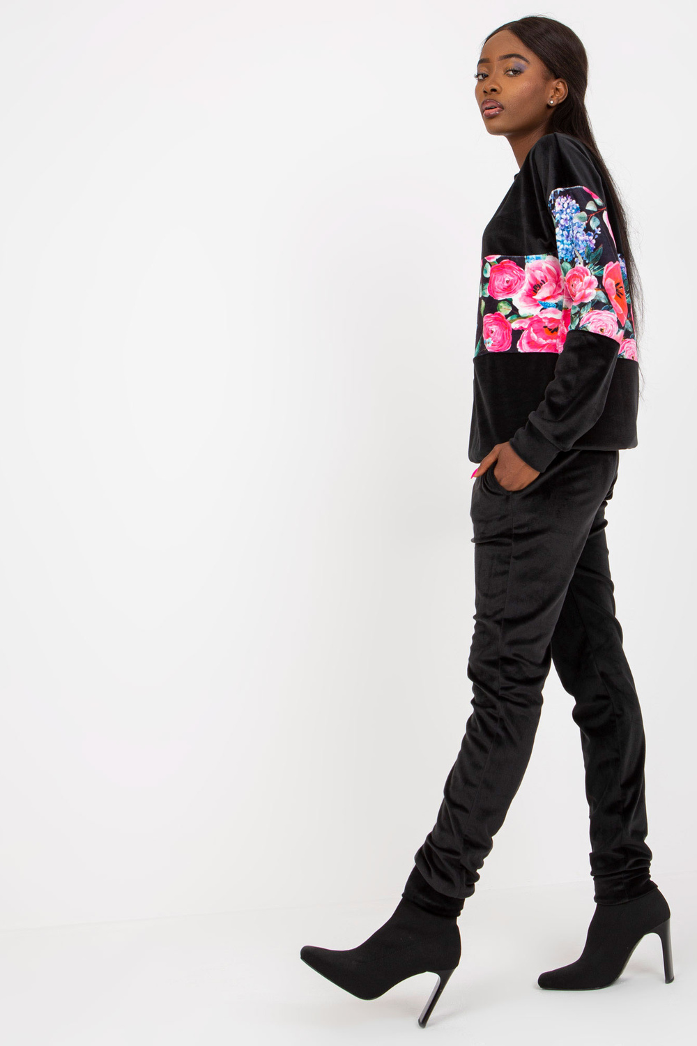 Melns divdaļīgs velūra komplekts ar džemperi bez kapuces RUE PARIS