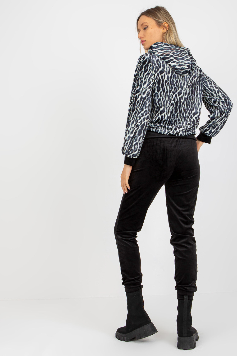 Baltā un melnā velūra komplekts ar leoparda sporta kreklu RUE PARIS.