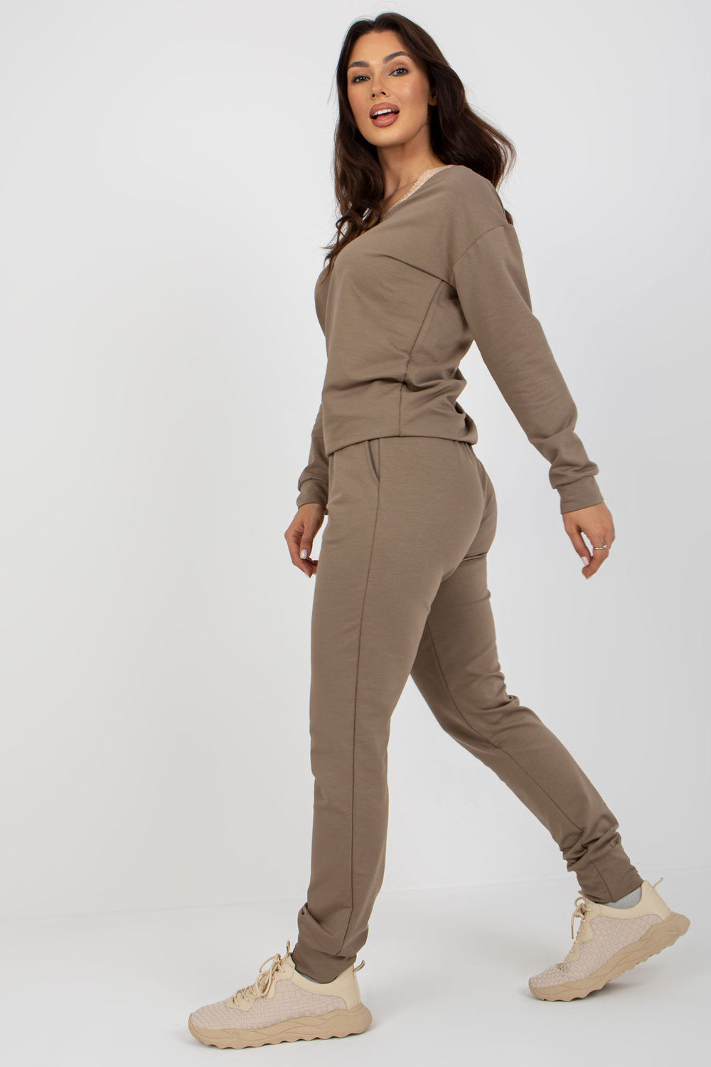 Dunkelbeiges Damen Freizeitset mit Hose.