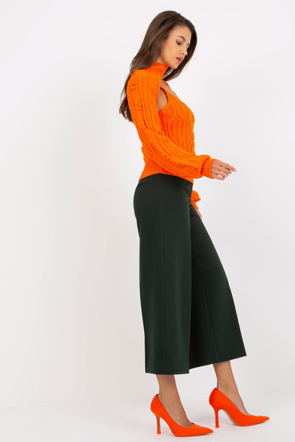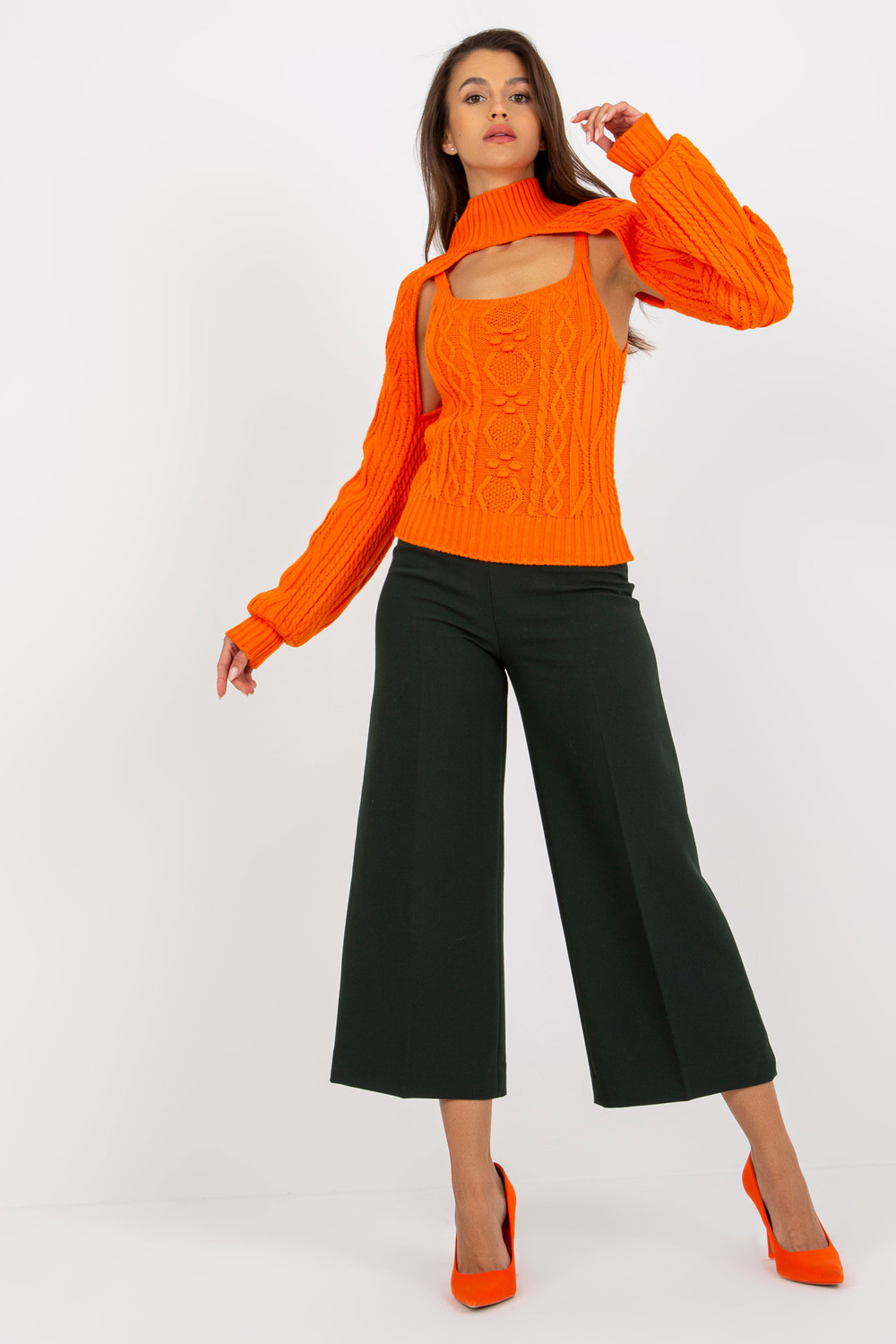 Orangefarbenes Set mit einem kurzen Pullover un einem Strickoberteil. Produkta kods: EM-KMPL-1078-01.59P dominantes Muster: glatt Stils: lässig Anlass: lässig, in der Stadt, spazieren gehen, arbeiten Das Model trägt eine Einheitsgröße. Maße des Models: Höh