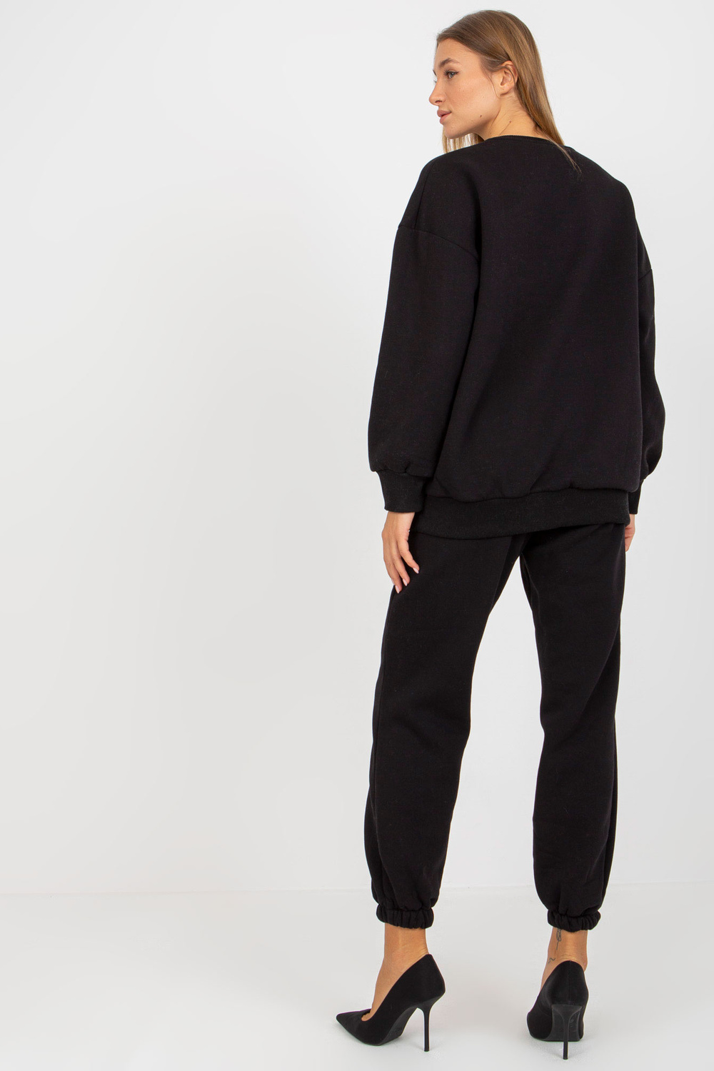 Melns divdaļīgs sporta krekla komplekts ar liela izmēra sporta kreklu.