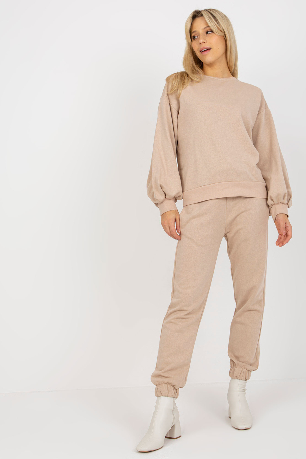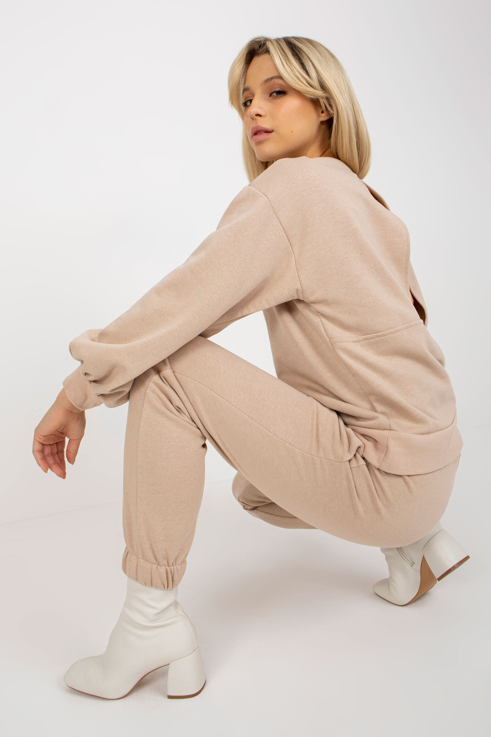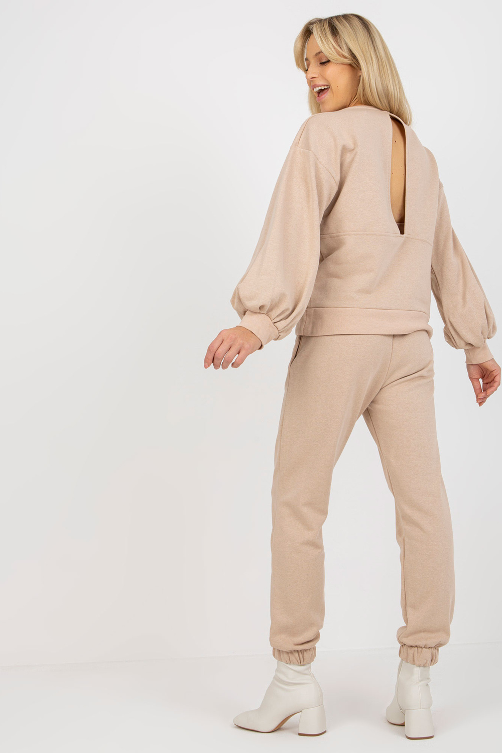 Bēšs ikdienas komplekts ar džemperi ar atvērtu muguru.
