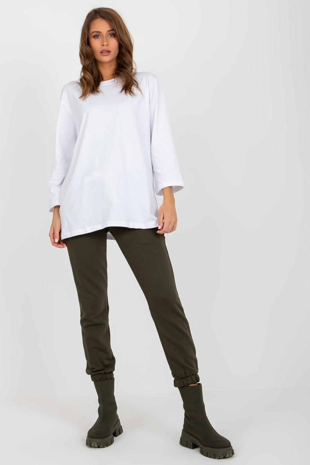Komplekta izmēri vienā izmērā mērot plakanā: sporta krekla platums zem padusēm - 55 cm, džempera garums - 65 cm, blūzes platums zem padusēm - 55 cm, piedurkņu garums - 52 cm, blūzes garums - 75 cm, bikšu platums jostasvietā - 34 cm, stāvokļa augstums - 30 cm, bikšu garums - 95 cm.
