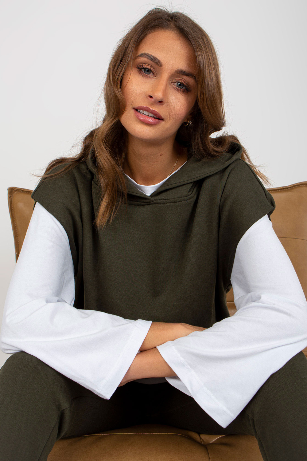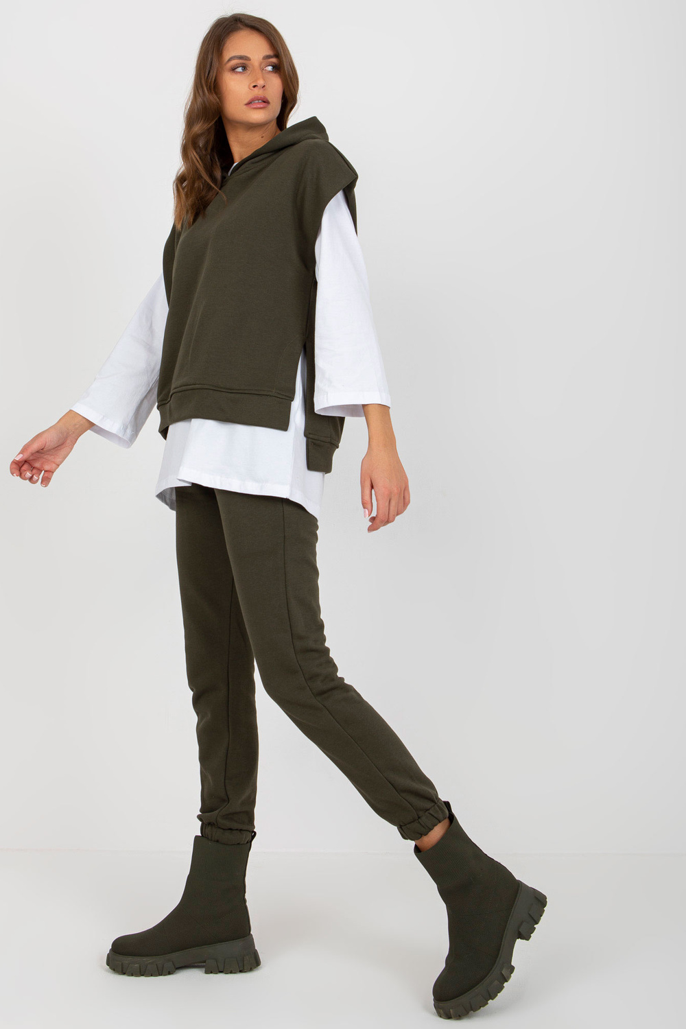 Khaki trīsdaļīgs ikdienas komplekts ar kapuci.
