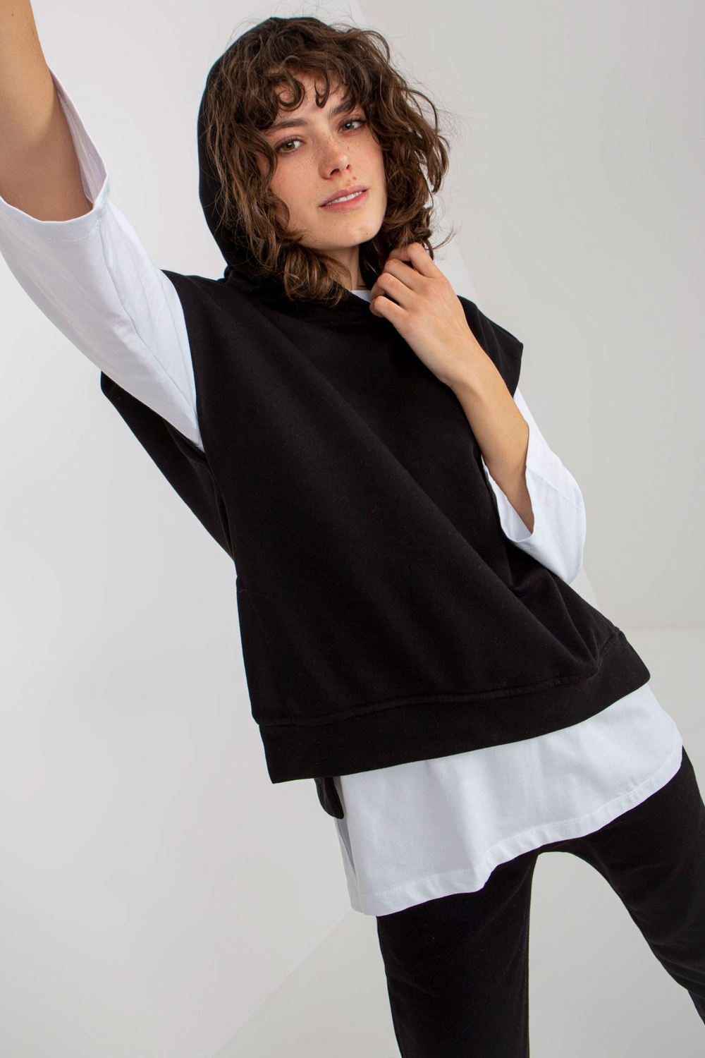 Melns trīsdaļīgs ikdienas komplekts ar biksēm.