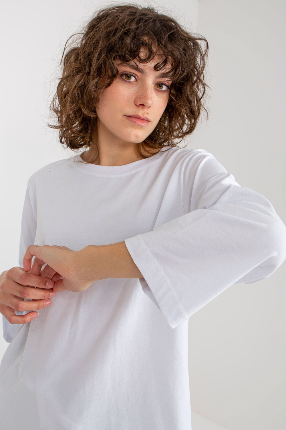 Modele valkā viena izmēra izmēru. Modeļa izmēri: augums 177 cm, krūtis 84 cm, viduklis 62 cm, gurni 89 cm.