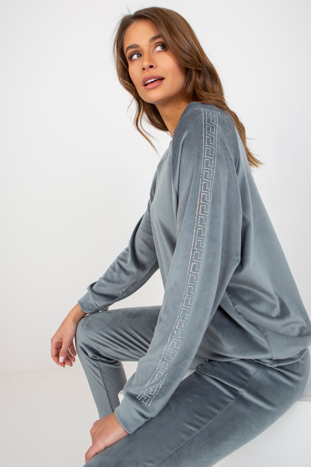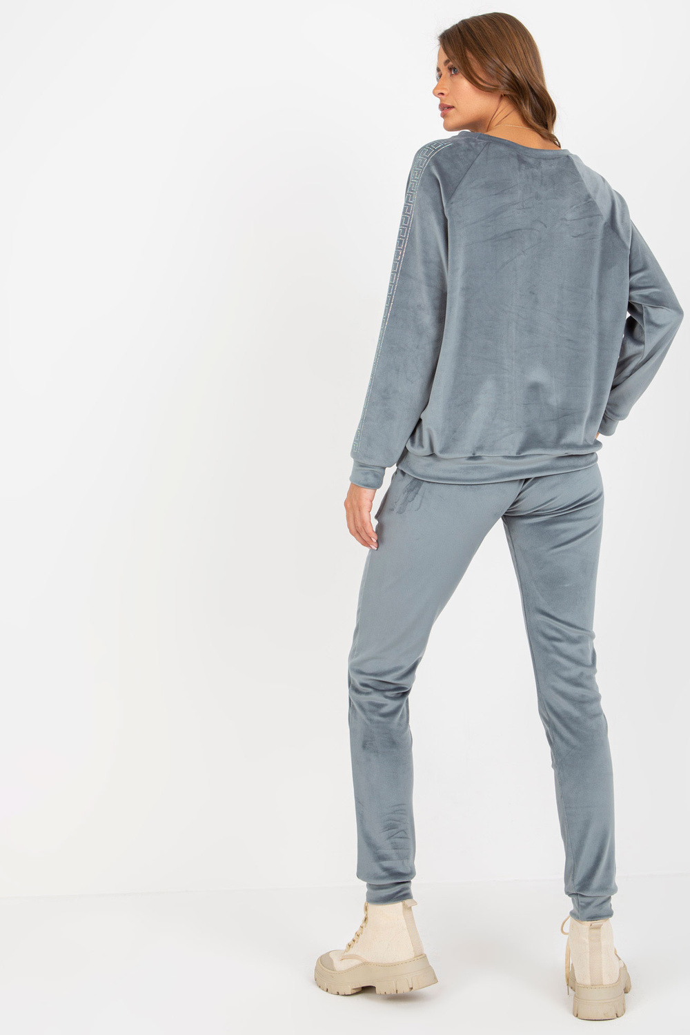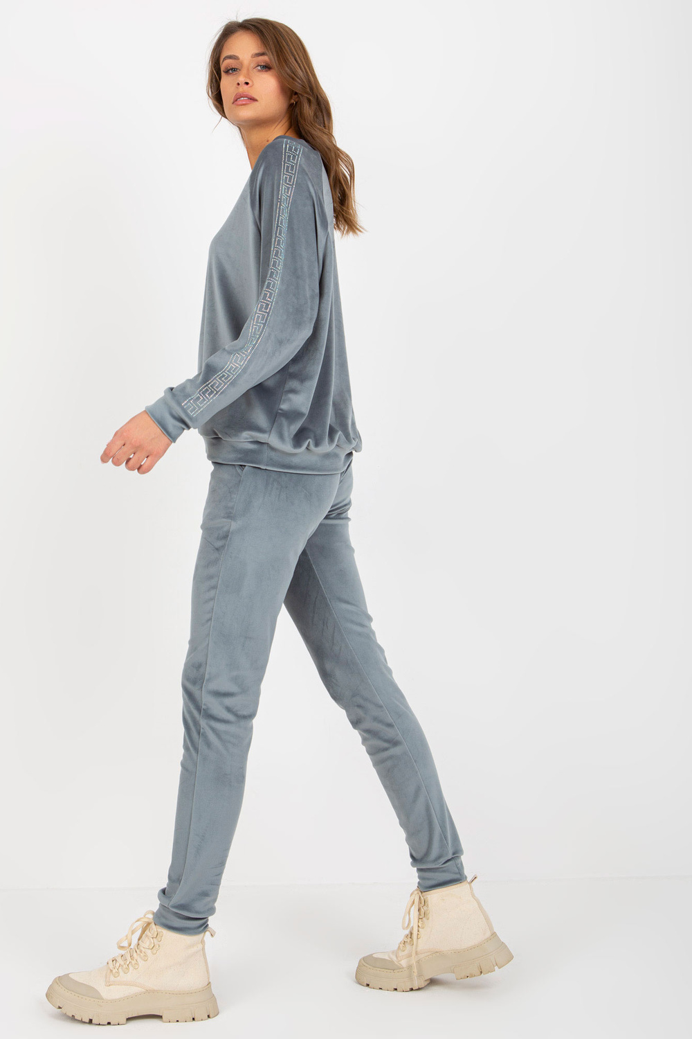 Netīri zils divdaļīgs velūra komplekts ar aplikāciju.