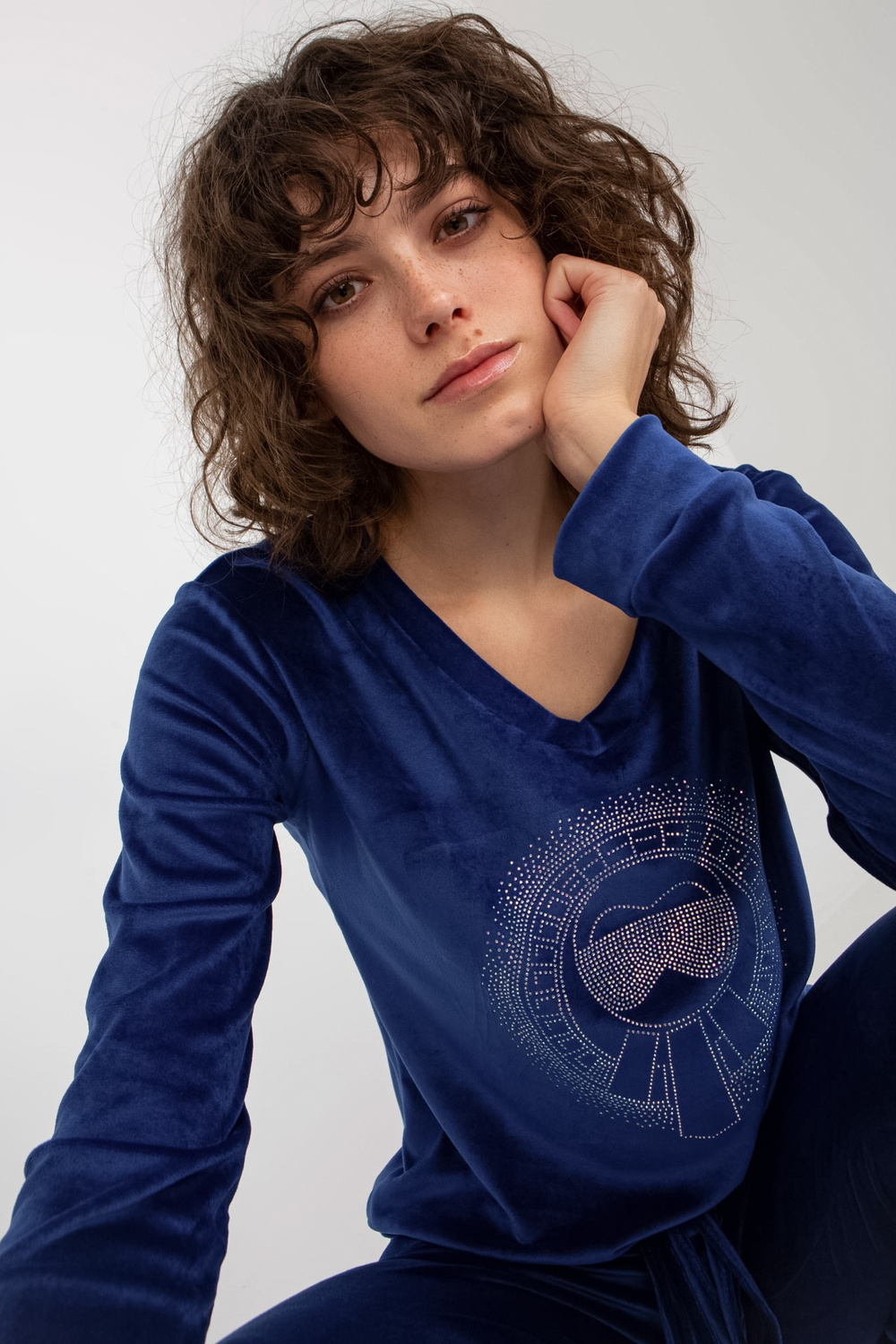 Kobalta velūra komplekts ar rhinestones aplikācijām.