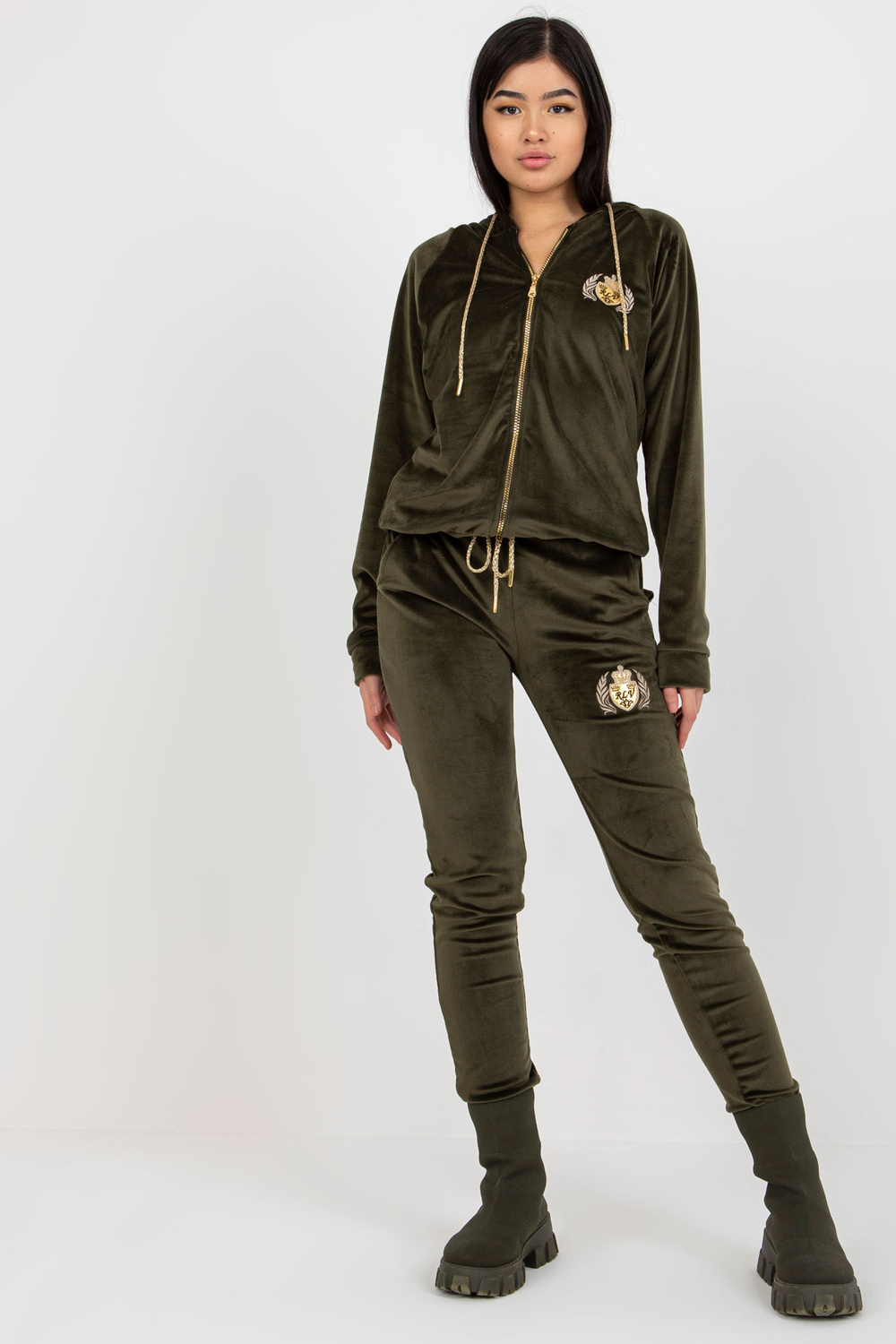Khaki krāsas divdaļīgs velūra komplekts ar kapuci.