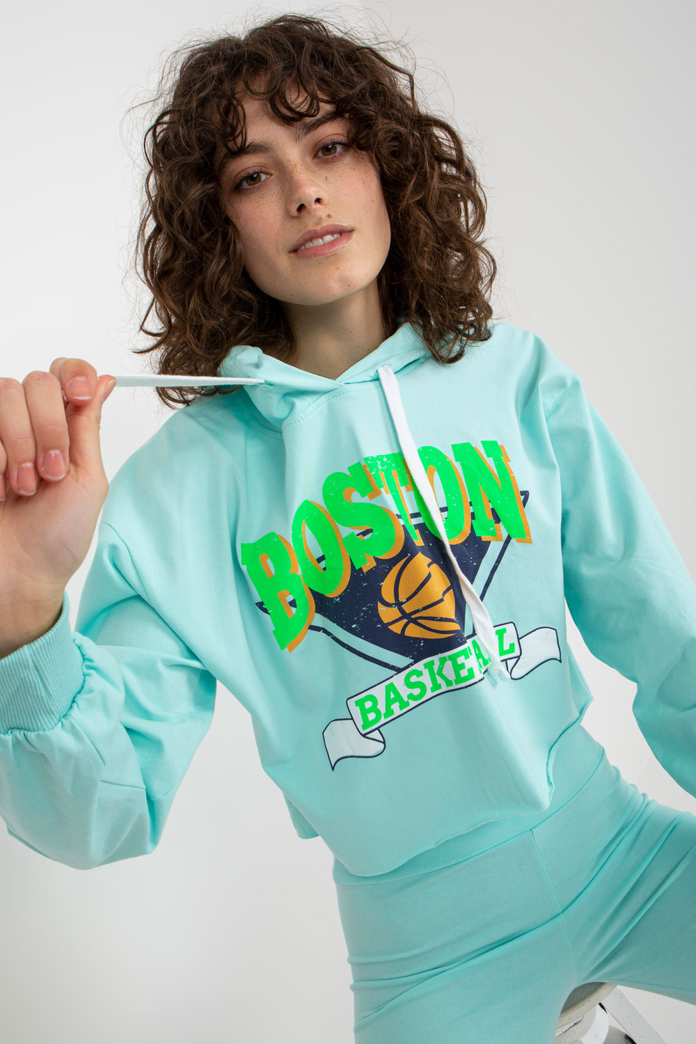 Piparmētru ikdienas komplekts ar īsu sporta kreklu un riteņbraukšanu.