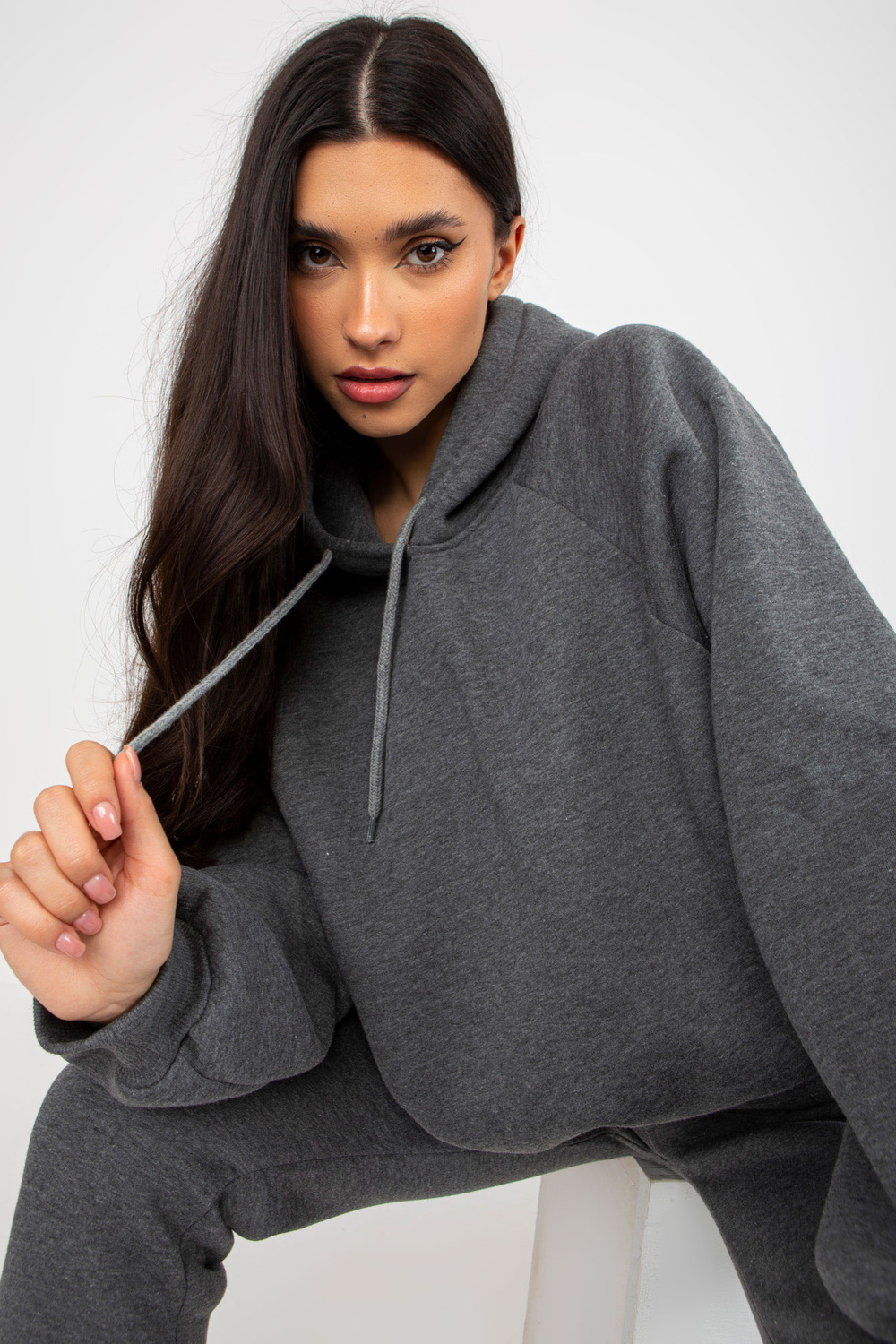 Tumši pelēka sporta krekla pamatkomplekts ar kapuci.