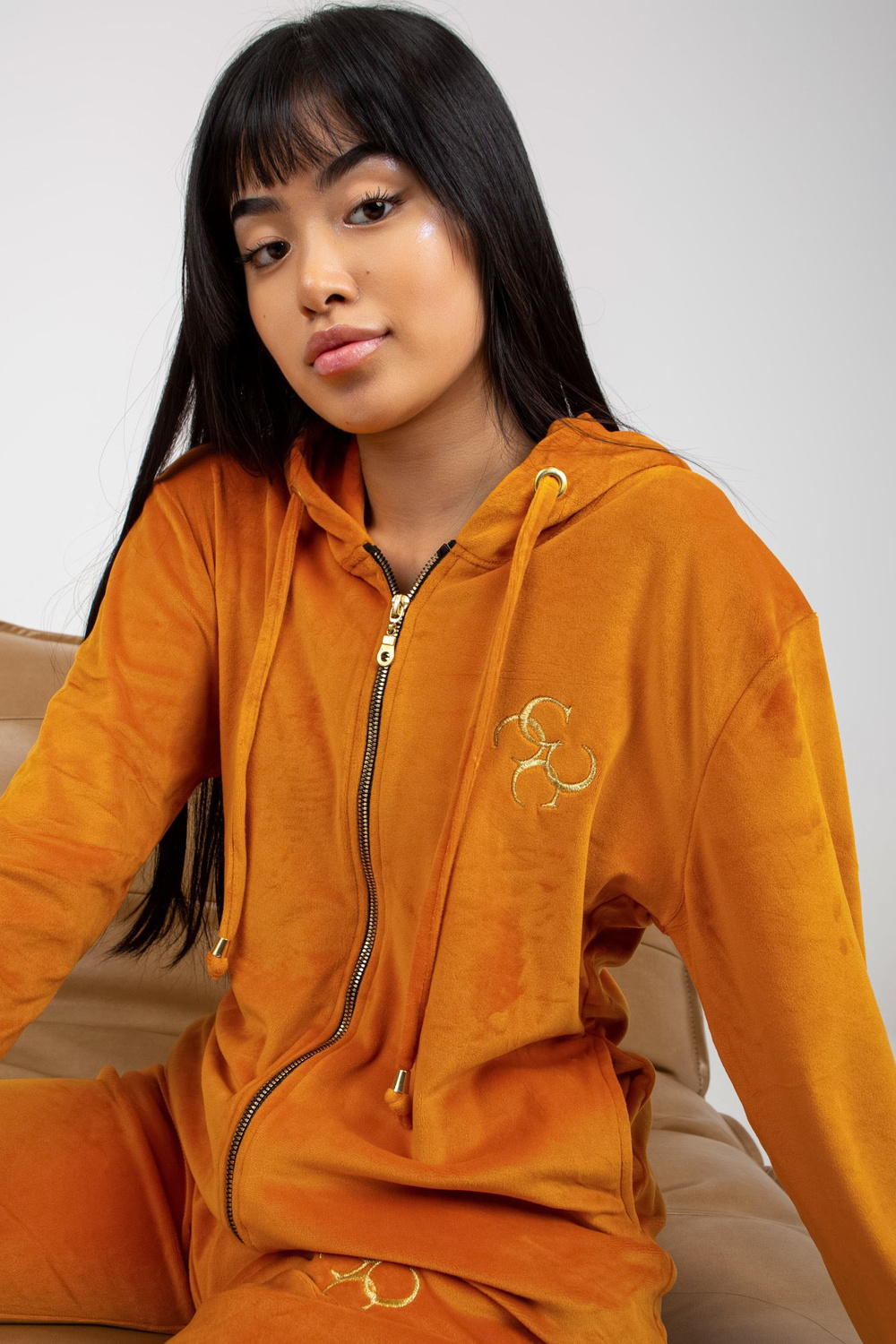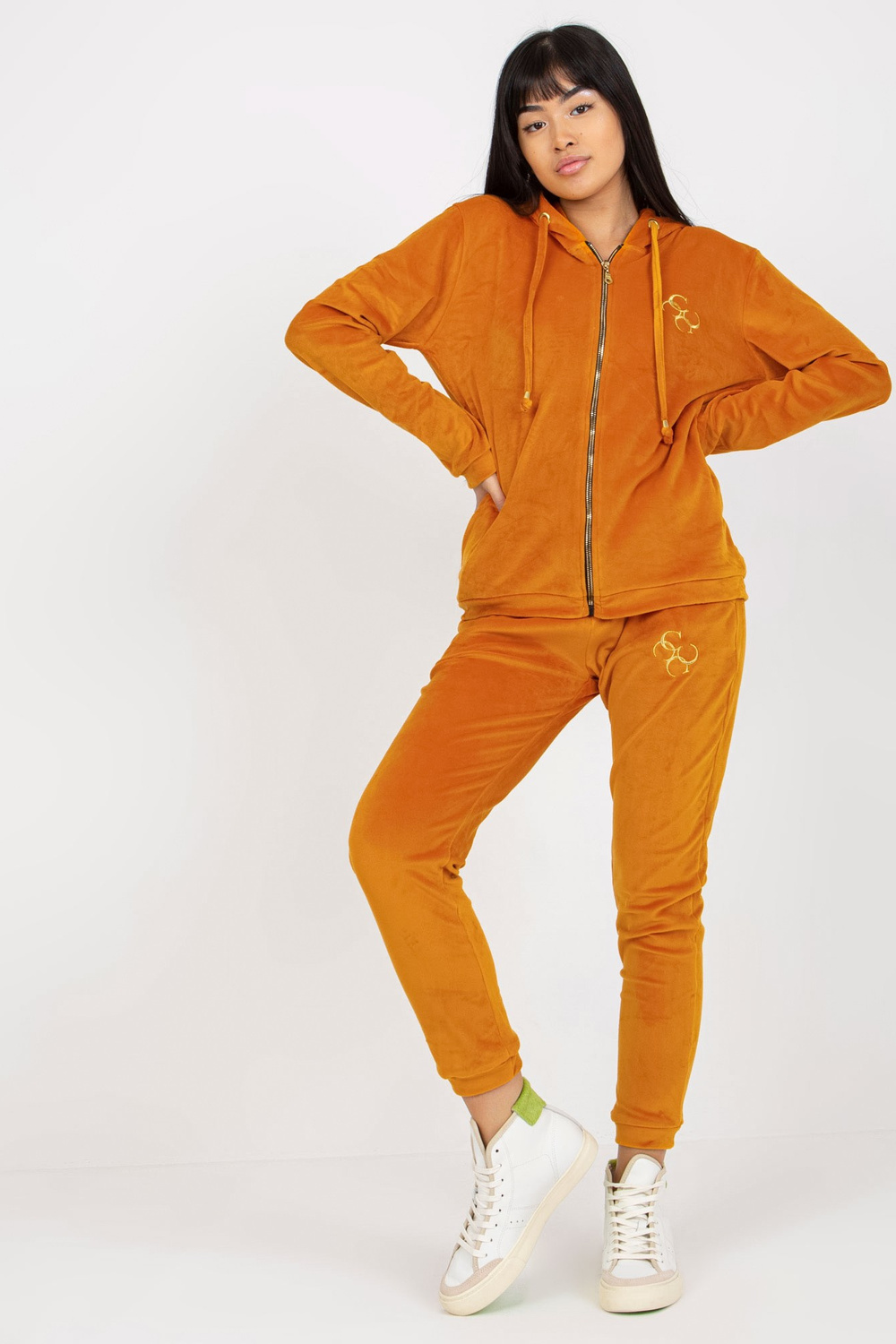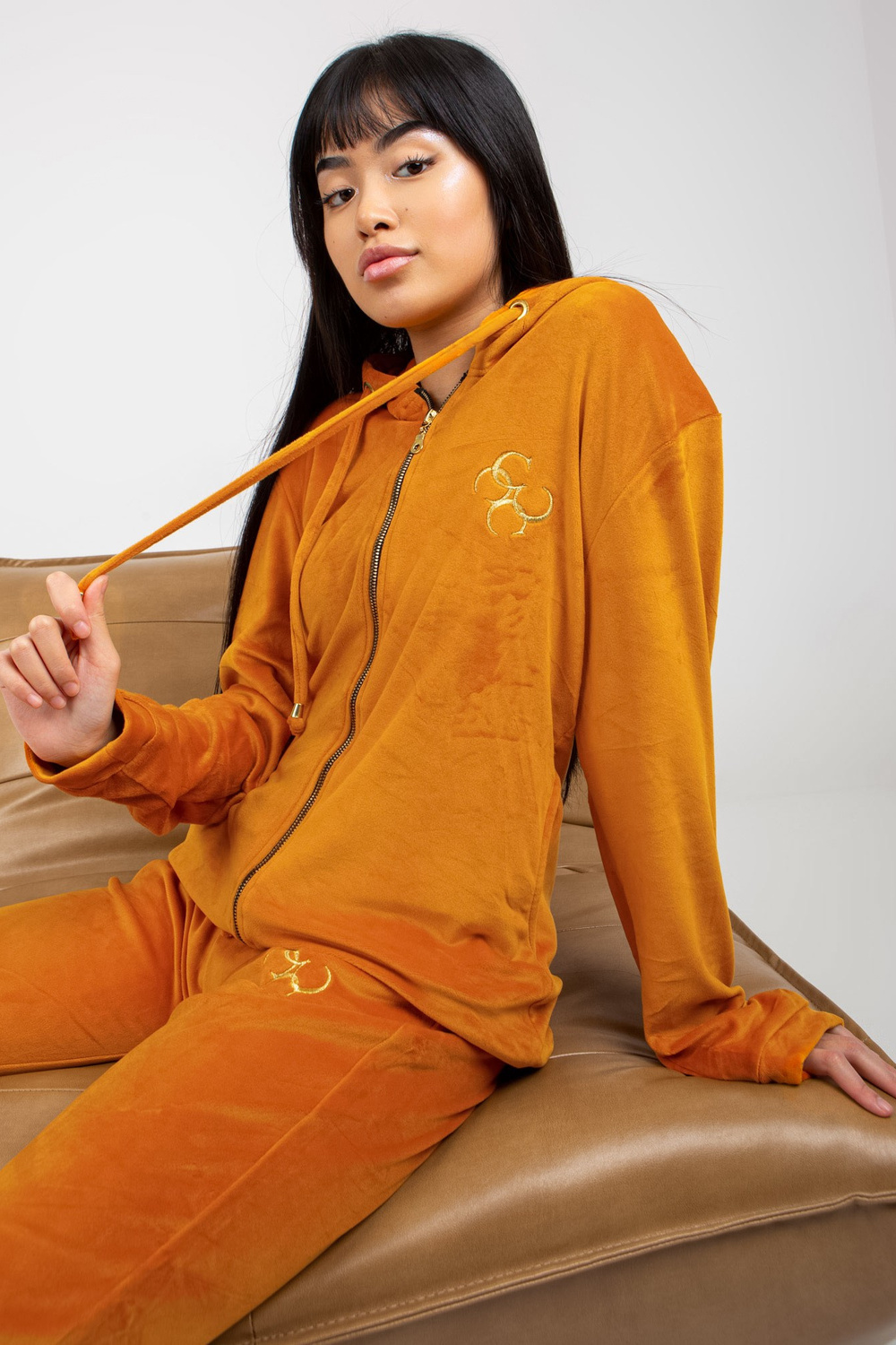Tumši dzeltens sieviešu velūra komplekts ar Melody svītrām.