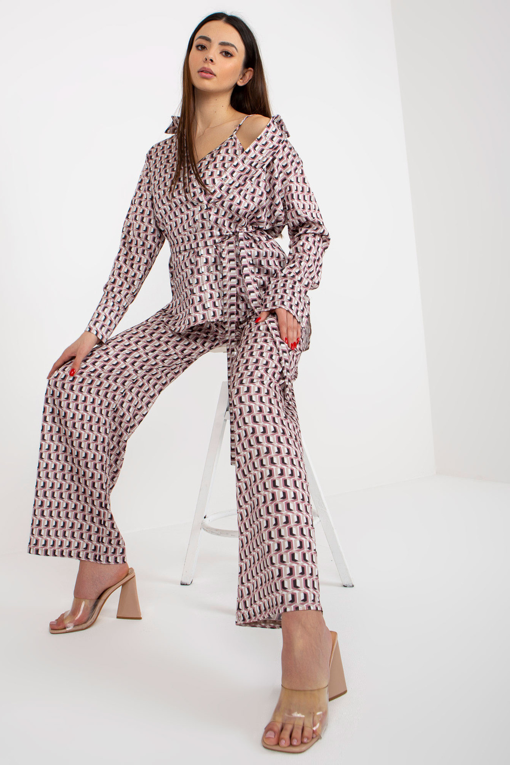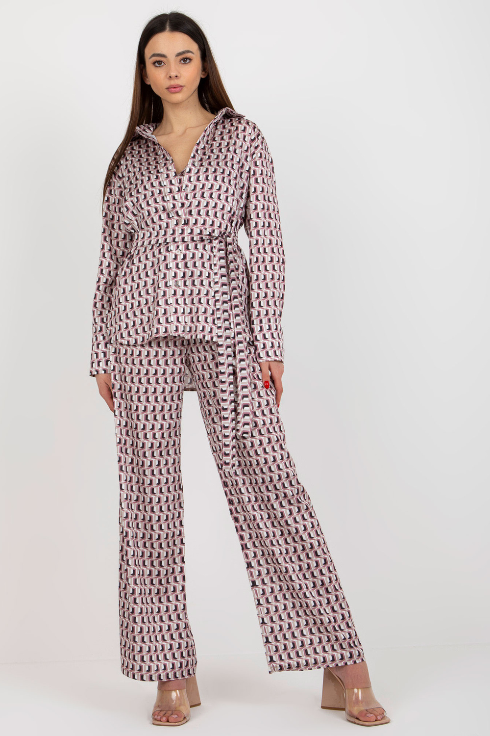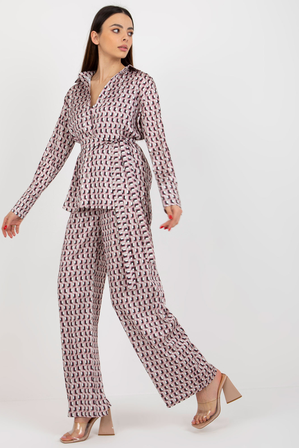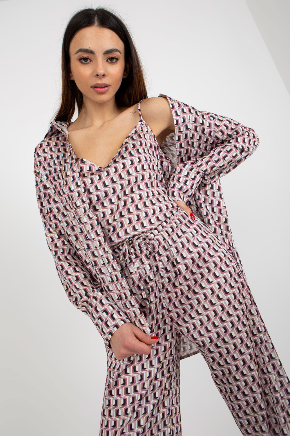Bēšs un rozā trīsdaļīgs ikdienas komplekts ar kreklu