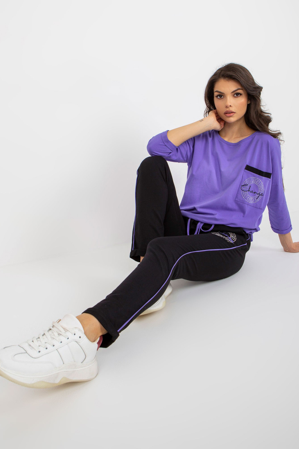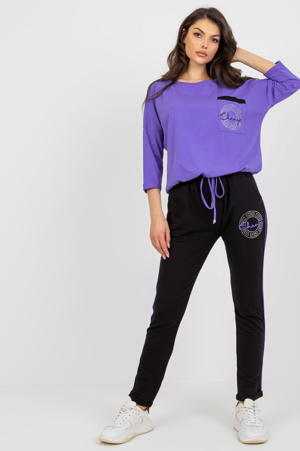 Violets divdaļīgs treniņtērpa komplekts ar aplikāciju.