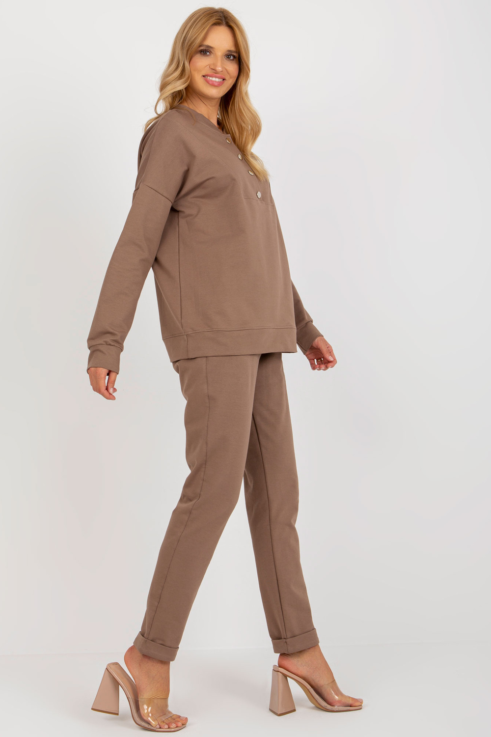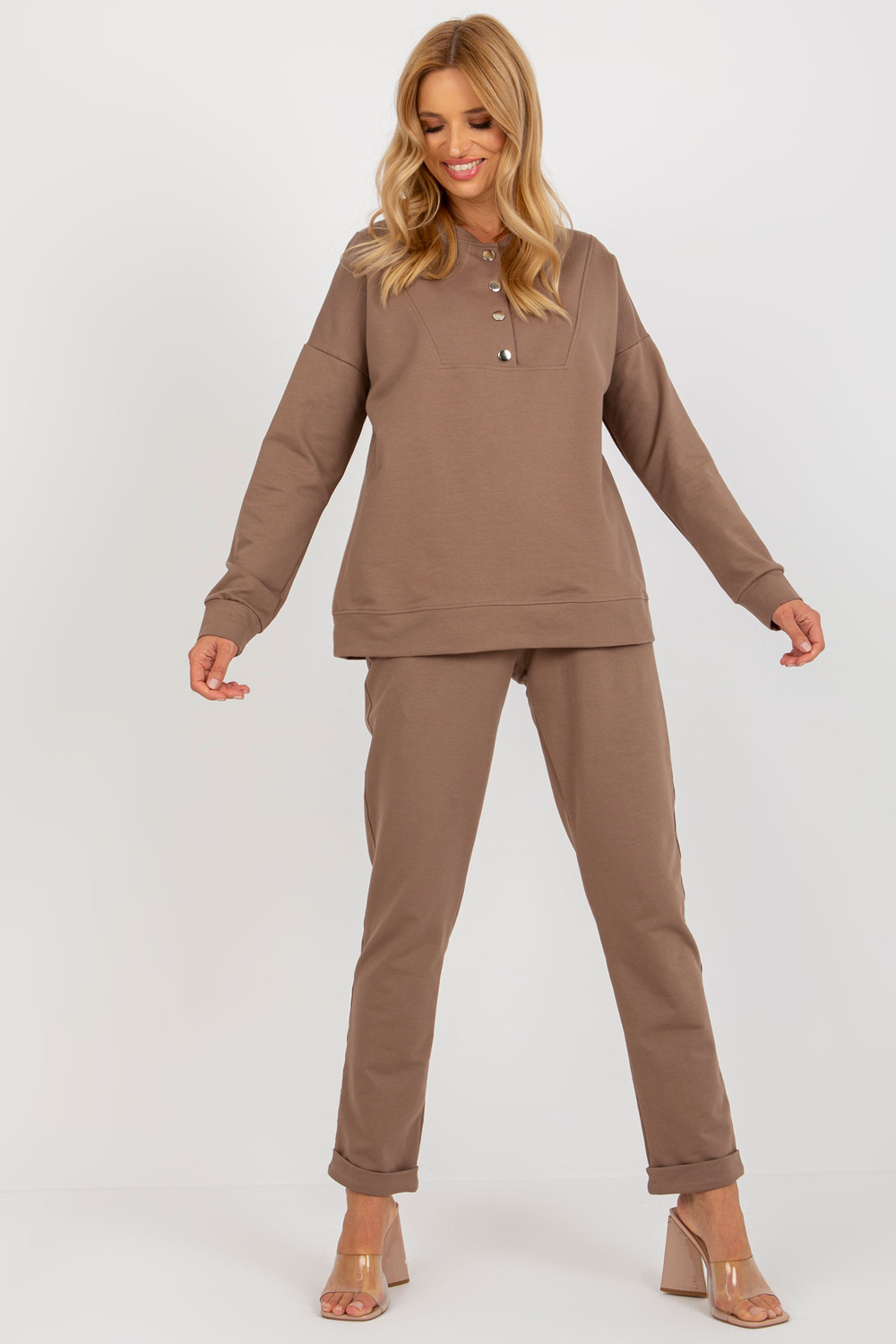 Komplekta izmēri S/M izmērā mērot plakanā: sporta krekla platums zem rokas - 60 cm, piedurkņu garums - 62 cm, sporta krekla garums - 65 cm, bikšu vidukļa platums - 35 cm, vidukļa augstums - 30 cm, bikšu garums - 102 cm.