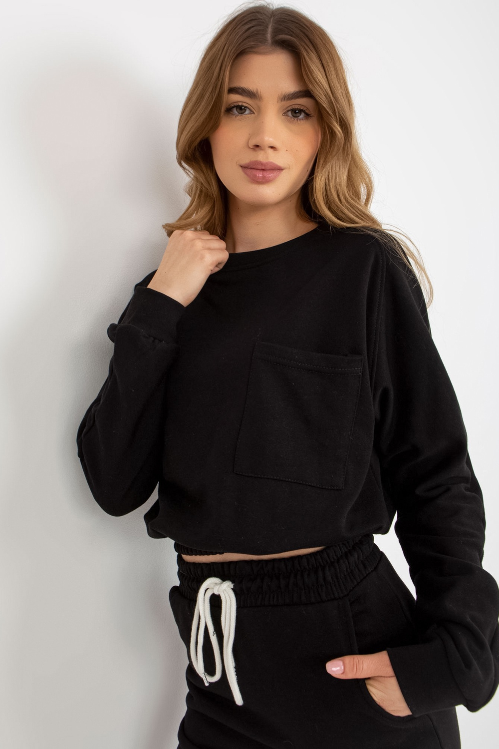 Melns ikdienas pamata komplekts ar īsu sporta kreklu.