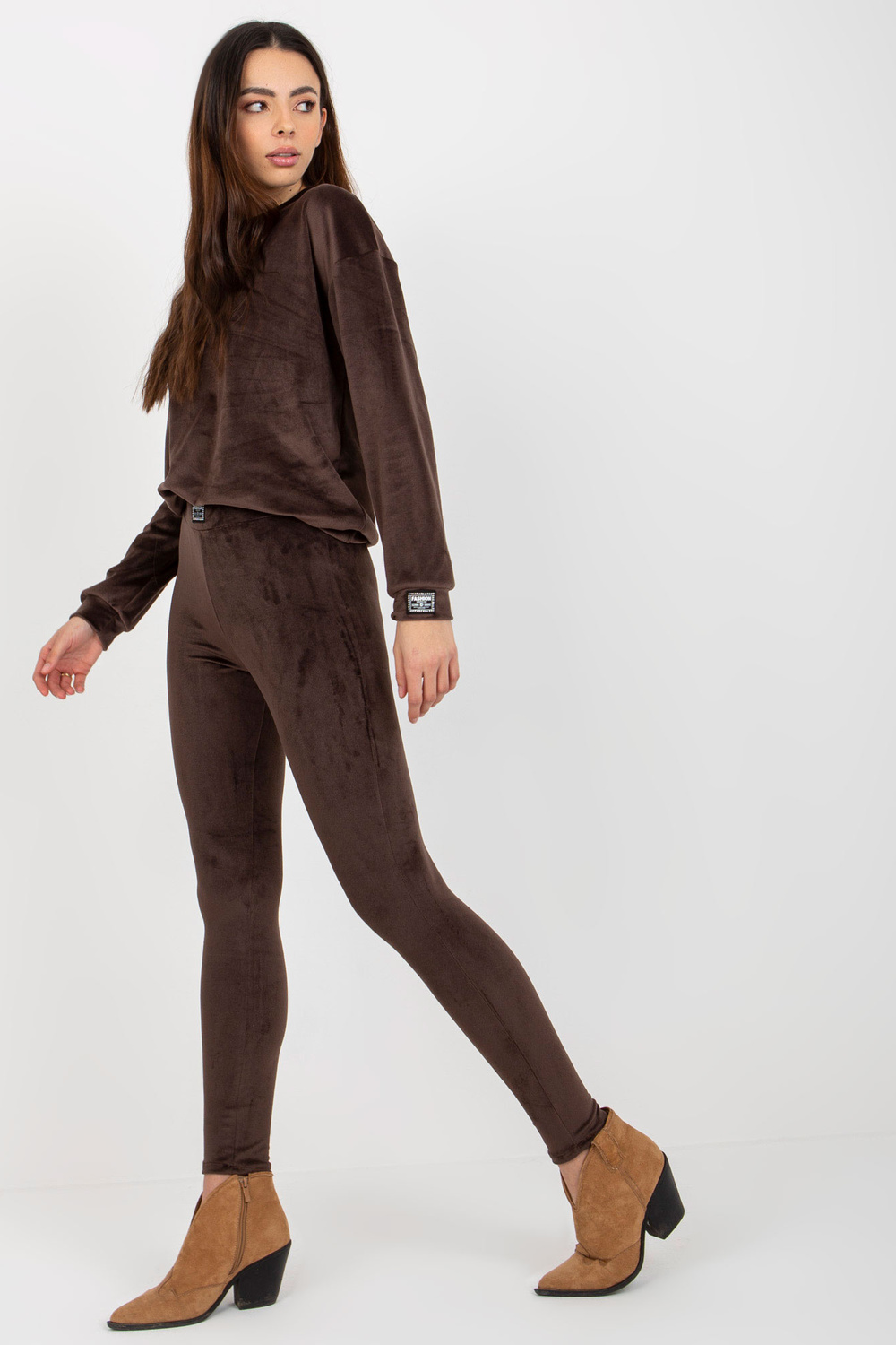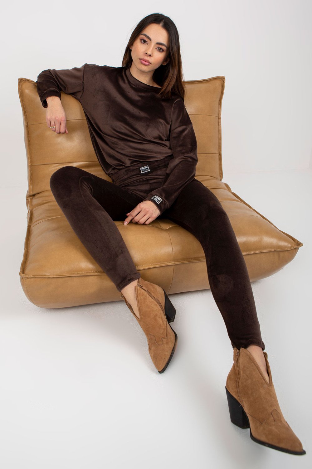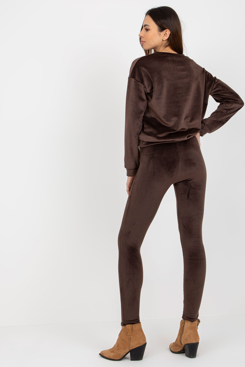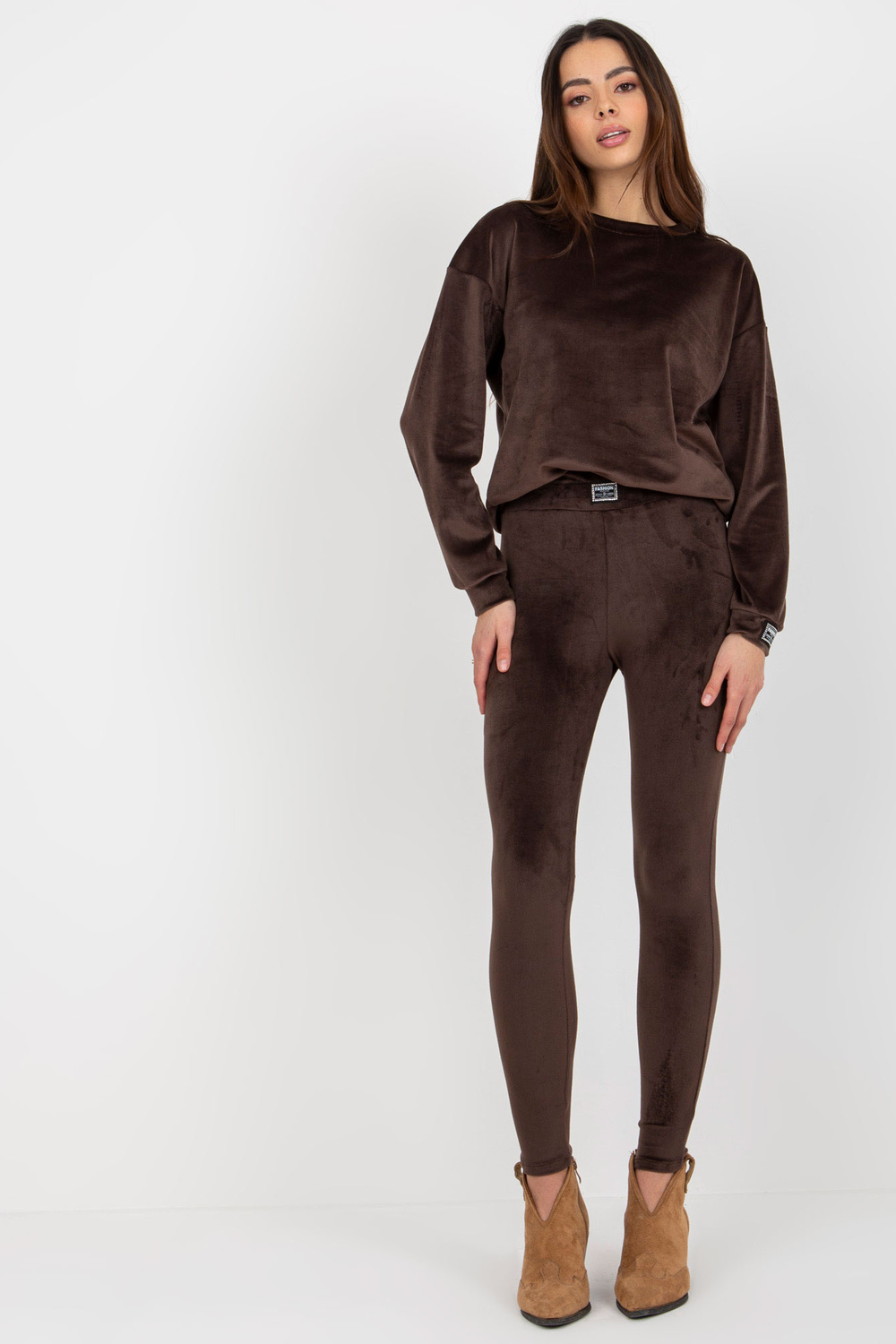 Tumši brūns sieviešu velūra komplekts ar legingiem.
