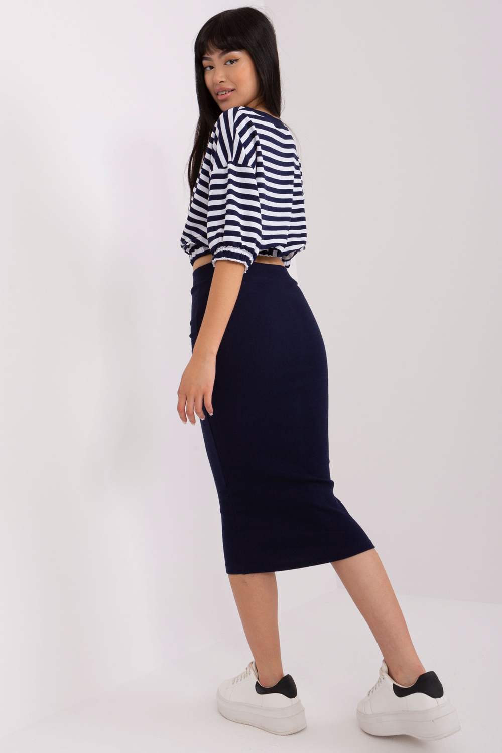 Komplekta izmēri viena izmēra izmērā, mērot plakanā stāvoklī: blūzes platums zem rokas - 55 cm, blūzes garums - 47 cm, svārku platums jostasvietā - 33 cm, svārku garums - 74 cm.