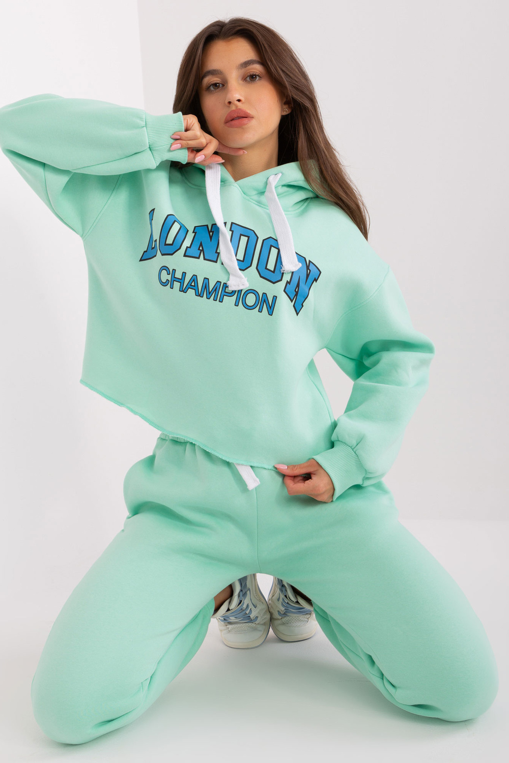Komplekta izmēri viena izmēra izmērā, mērot plakanā: platums zem rokām - 54 cm, sporta krekla garums - 49 cm, piedurkņu garums - 61 cm, vidukļa platums - 35 cm, bikšu garums - 98 cm.