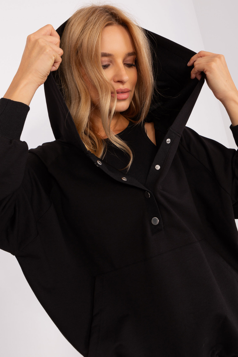 - Modele valkā viena izmēra izmēru. Modeļa izmēri: augums 175 cm, krūtis 90 cm, viduklis 66 cm, gurni 94 cm