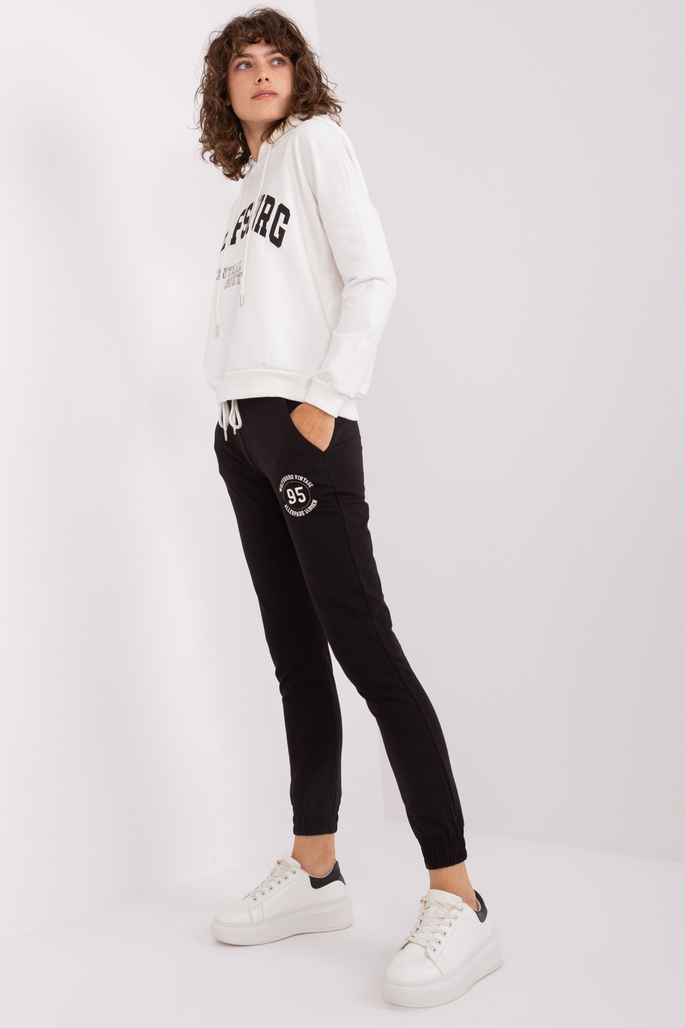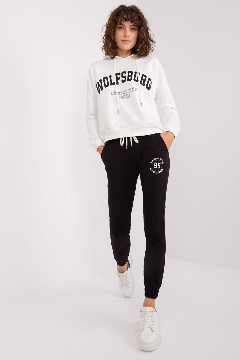 Komplekta izmēri S/M izmērā mērot plakanā: sporta krekla platums zem rokas - 57 cm, piedurknes garums - 58 cm, sporta krekla garums - 57 cm, bikšu vidukļa platums - 37 cm, vidukļa augstums - 26 cm, bikšu garums - 96 cm.