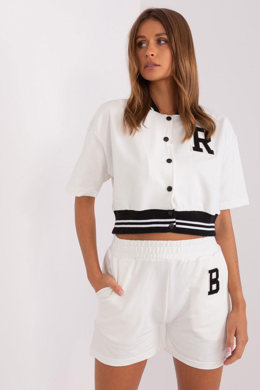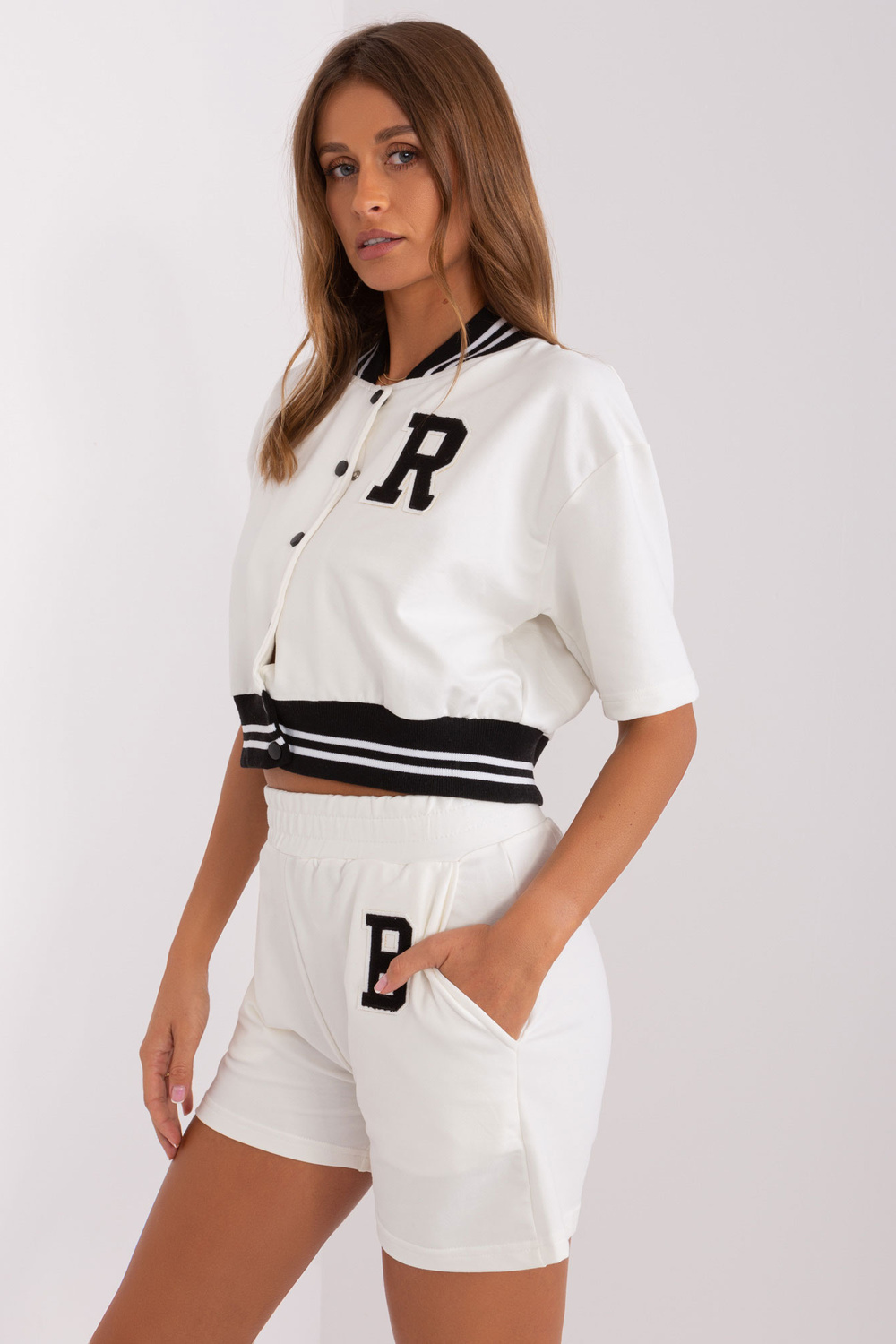 Komplekta izmēri viena izmēra izmērā, mērot plakanā: sporta krekla platums zem rokas - 52 cm, piedurknes garums - 22 cm, sporta krekla garums - 46 cm, vidukļa platums - 30 cm, šortu garums - 39 cm.