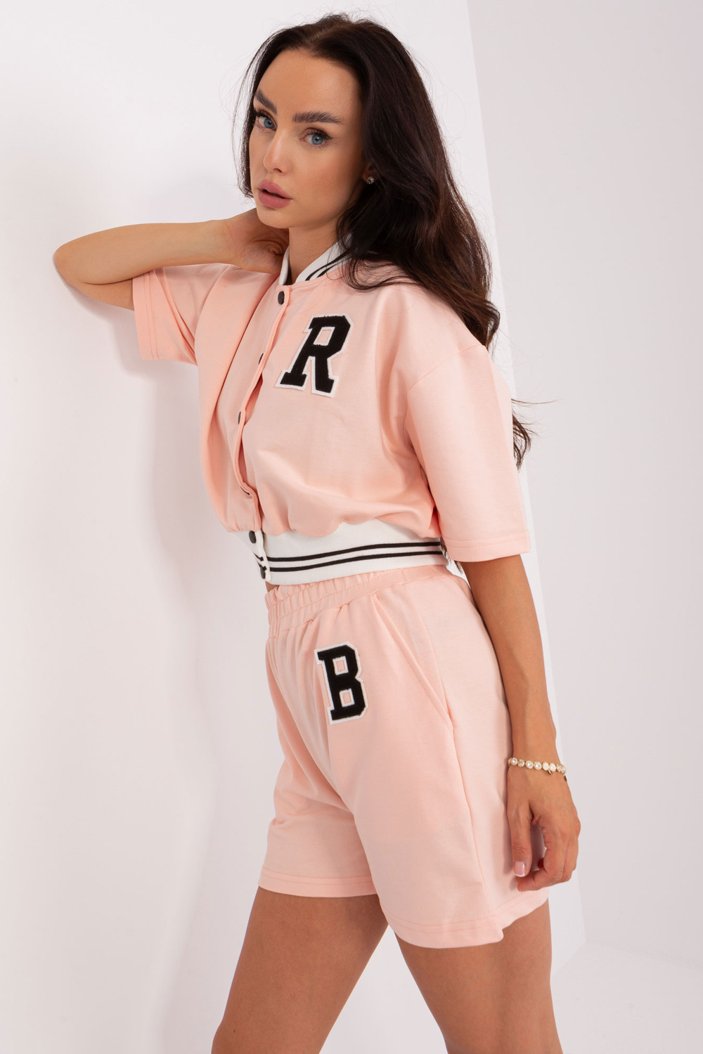Komplekta izmēri viena izmēra izmērā, mērot plakanā: sporta krekla platums zem rokas - 52 cm, piedurknes garums - 22 cm, sporta krekla garums - 46 cm, vidukļa platums - 30 cm, šortu garums - 39 cm.