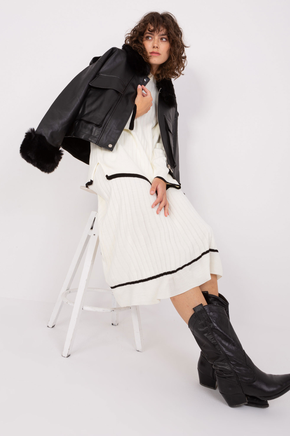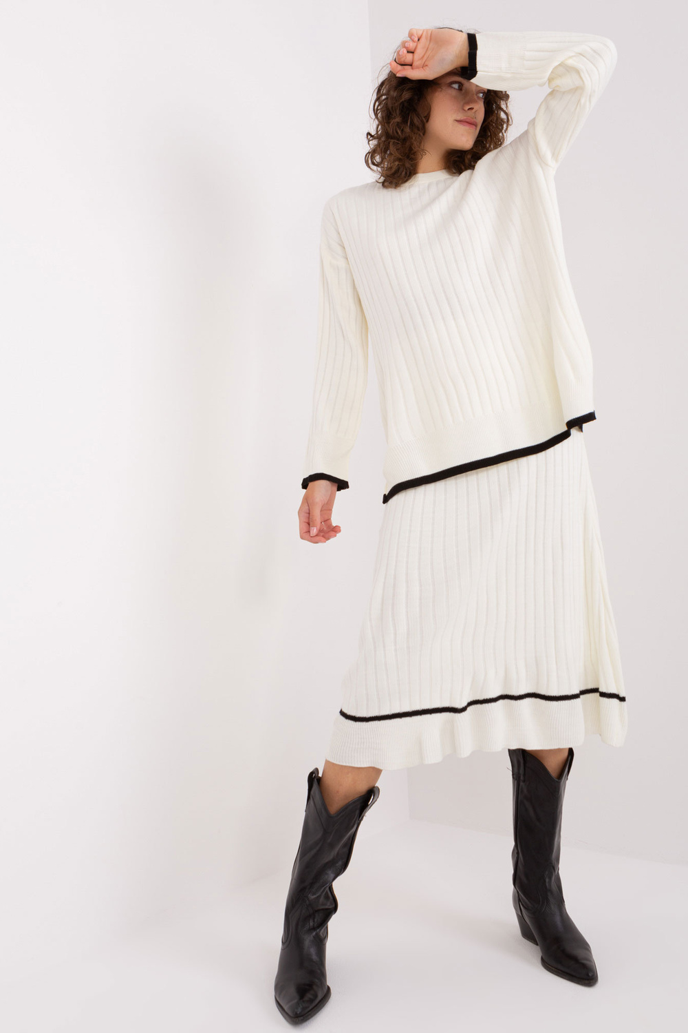 Ecru trikotāžas komplekts ar lielizmēra džemperi .
