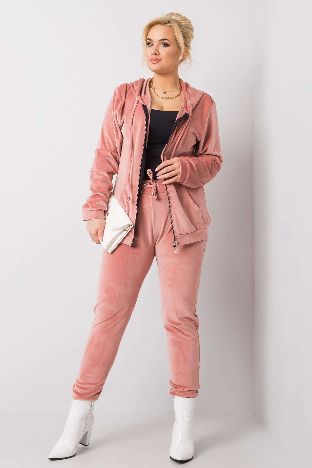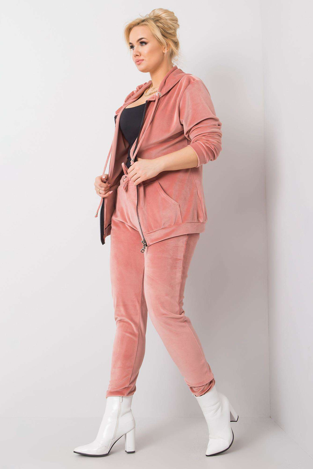 Netīri rozā velūra liela izmēra komplekts Michell. Šajā komplektā ietilpst: sporta krekls, bikšu materiālssastāvs: 90% kokvilna, 10% elastāns mazgāšanas metode: veļas mašīna 30°C. Modelis valkā 3XL izmēru. Modeļa izmēri: augums 172 cm, krūtis 103 cm, viduklis 73 cm, gurni