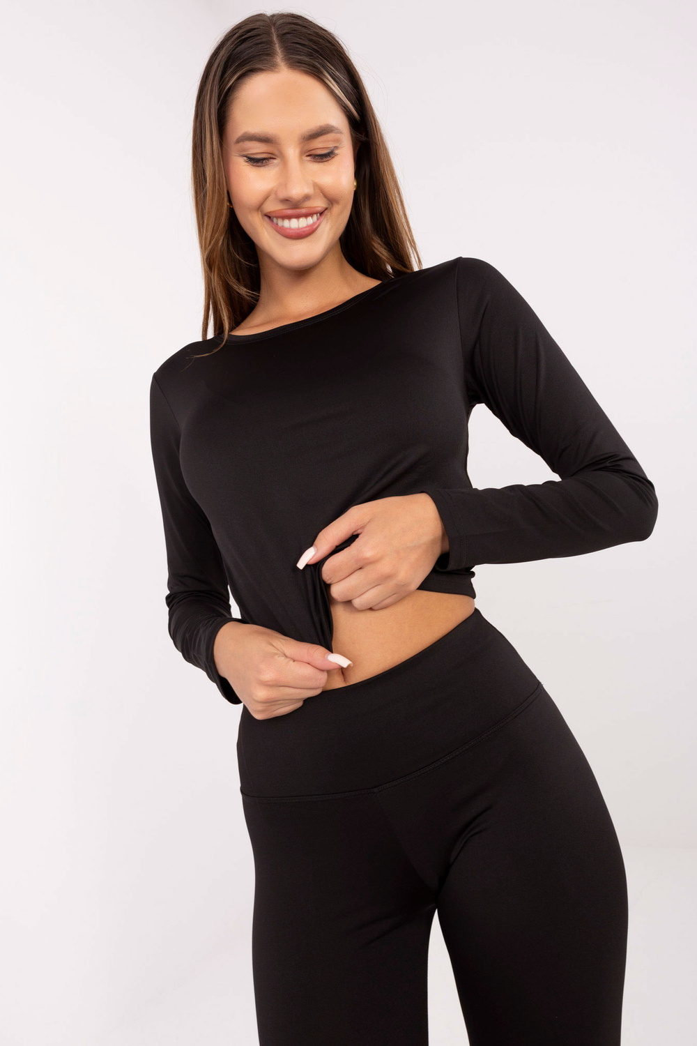 Patriceblack sporta komplekts. komplektā ietilpst: augšdaļa, legingu materiālssastāvs: 90% poliesters, 10% elastāns mazgāšanas metode: veļas mašīna 30°C. Modelis valkā S/M izmēru. Modeļa izmēri: augums 172 cm, krūtis 84 cm, viduklis 60 cm, gurni 88 cm. Izmēri