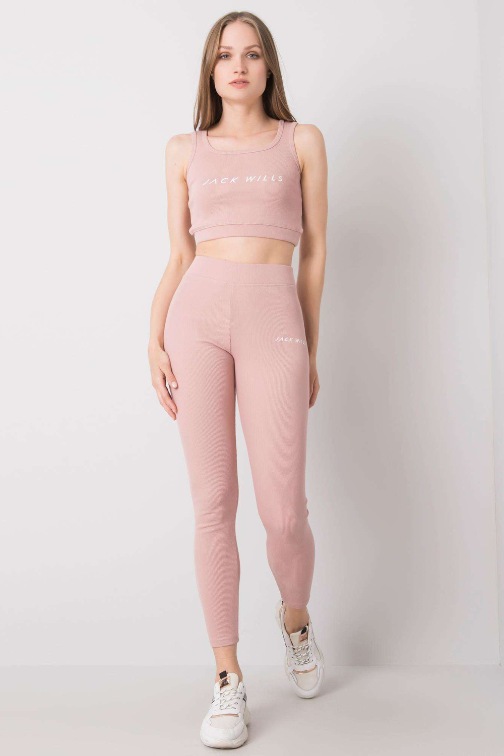 Komplekta izmēri S izmērā, mērot plakaniski: augšpusē: platums zem padusēm - 31 cm, kopējais garums - 34 cm, legingi: vidukļa platums - 30 cm, kopējais garums - 95 cm, stāvokļa augstums - 33 cm