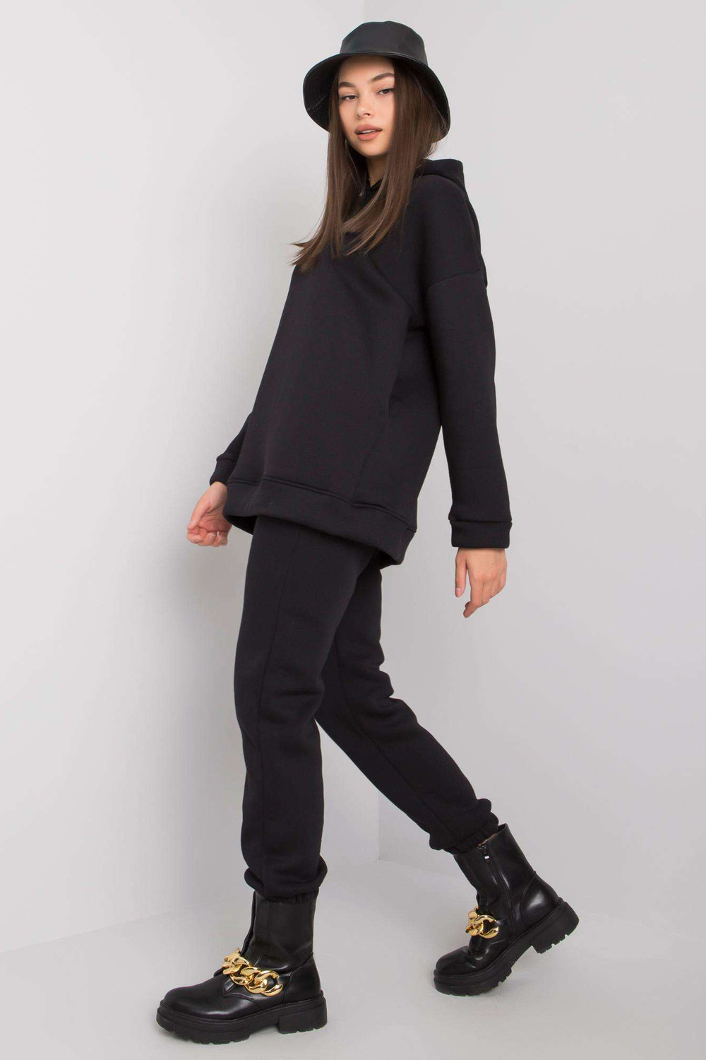 Dillona melns divdaļīgs treniņtērpa komplekts. Komplektā ietilpst: sporta krekls, bikšu materiālssastāvs: 90% kokvilna, 10% elastāns mazgāšanas metode: veļas mašīna 30°C Modelis valkā S izmēru. Modeļa izmēri: augums 172 cm, krūtis 88 cm, viduklis 61 cm, h