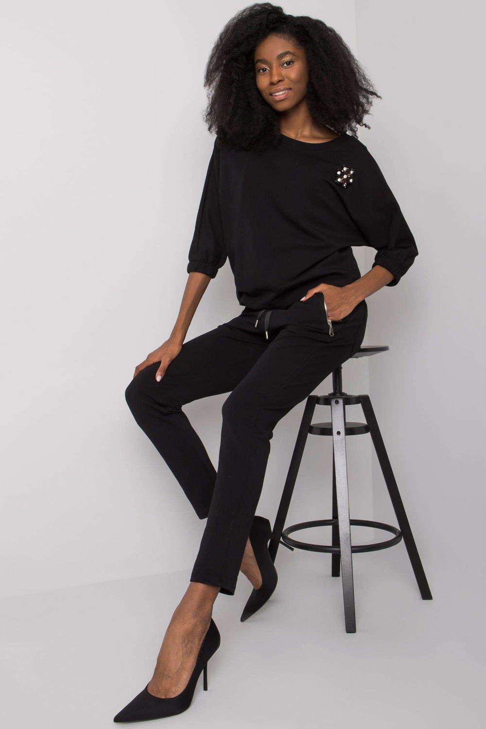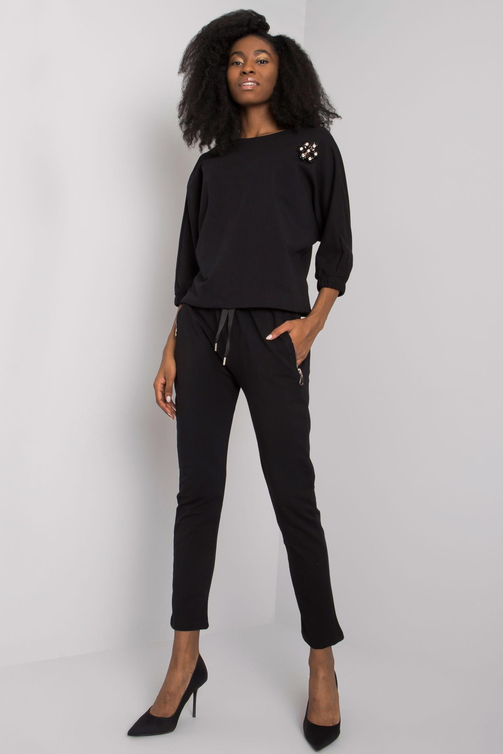 Melnās kokvilnas komplekts ar Jane RUE PARIS aplikāciju.