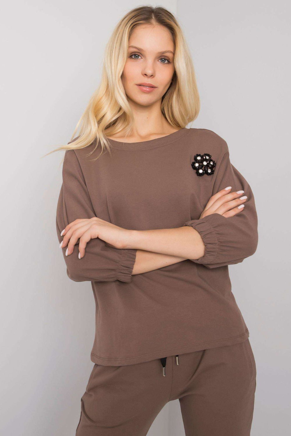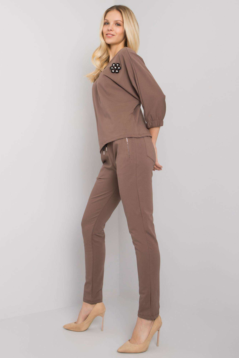 Brūnas kokvilnas komplekts ar Jane RUE PARIS aplikāciju.